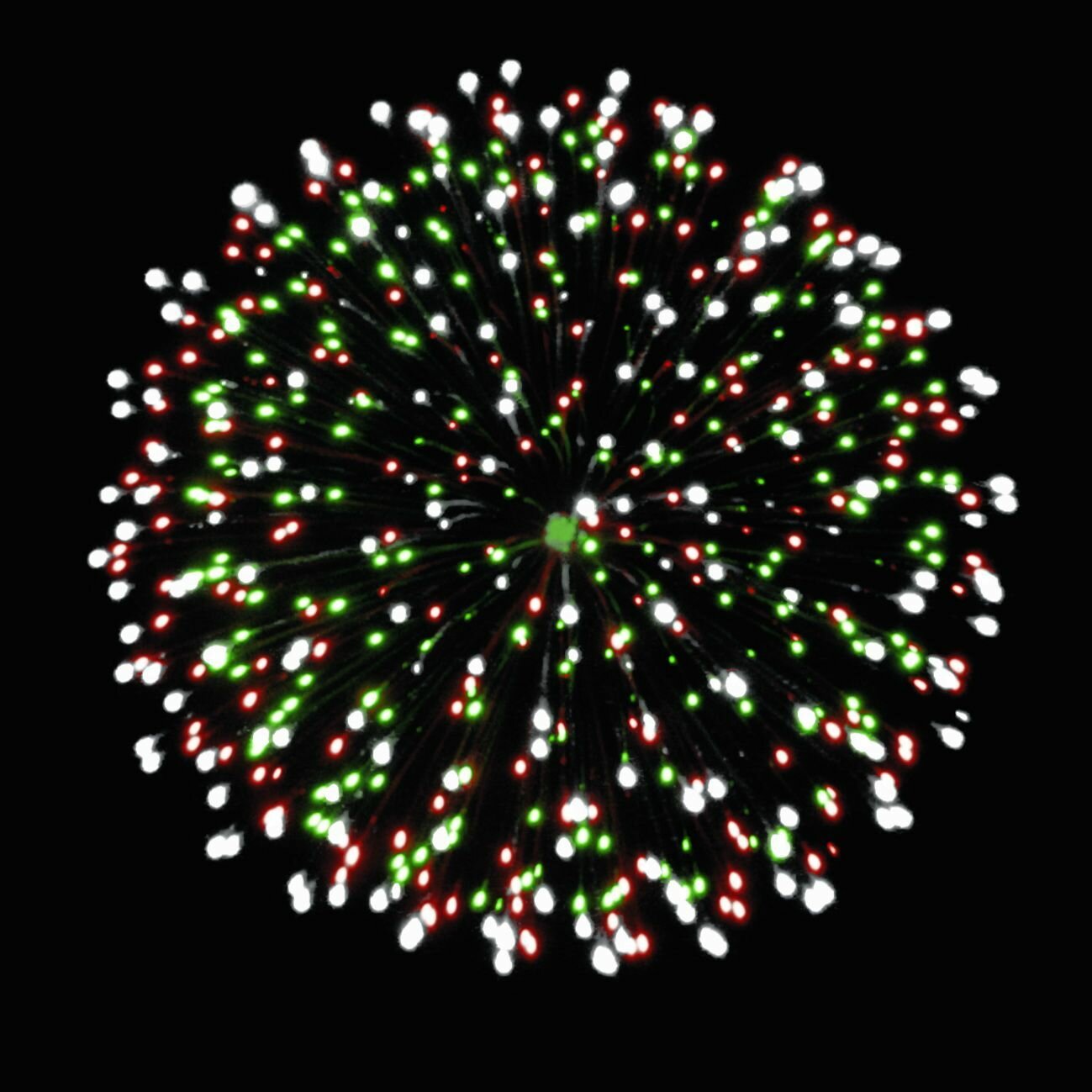 | Эффекты | Эффекты: 1. Разноцветные кометы разрываются сферами. 2. Серебряные форсы / красные и зеленые мерцающие огни. 3. Золотые форсы / зеленые и золотые мерцающие огни. 4. Зеленые огни. 5. Золотые форсы / красные и золотые мерцающие огни. 6. Золотые искристые форсы и красные огни. 7. Золотые искристые форсы и зеленые огни. 8. Красные / зеленые и серебряные мерцающие огни. 9. Серебряные форсы / красные и трещащие серебряные огни. 10. Серебряные форсы / зеленые и золотые трещащие огни. |