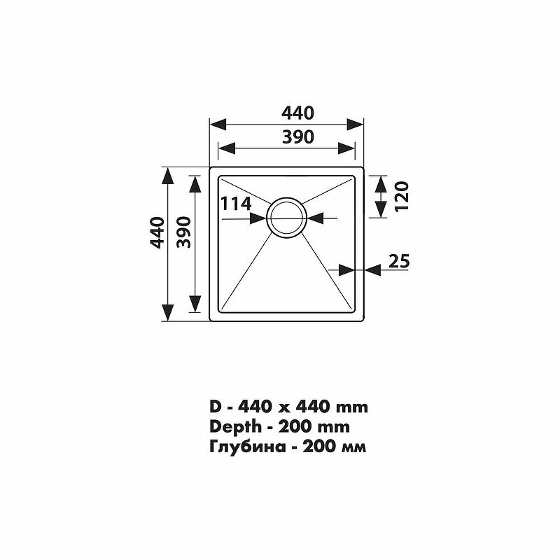 Кухонная мойка Kaiser KSM-4444 Silver 440x440x200*2.0+1.2mm