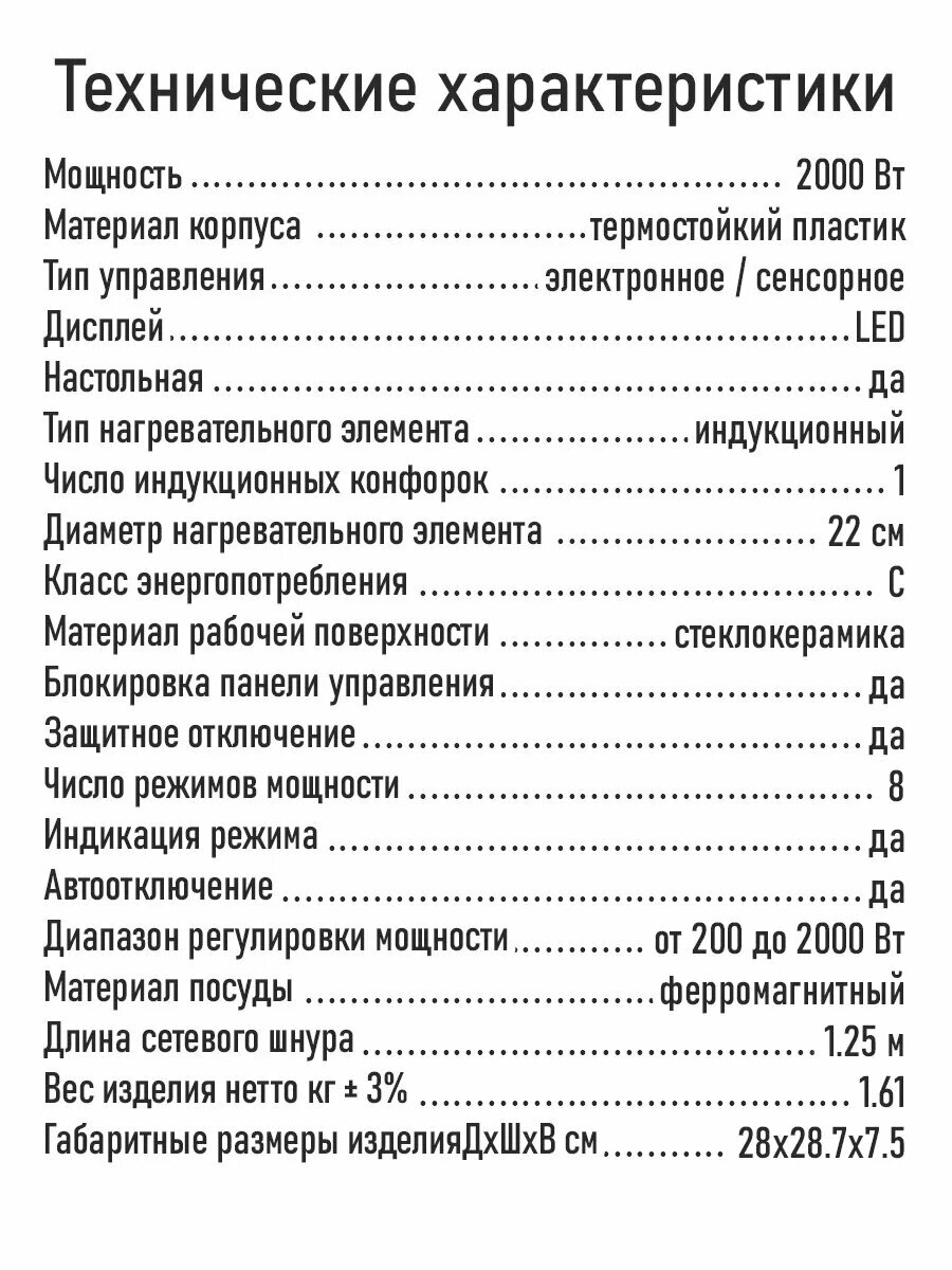 Плитка электрическая, индукционная, безимпульсная, 2000 Вт интересное: