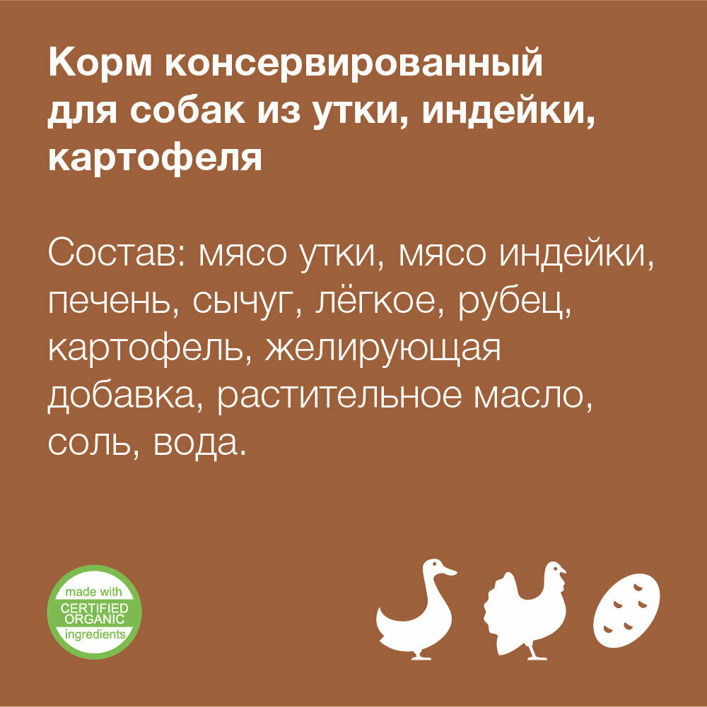 Organix Премиум консервы для собак с уткой 99%, 400г 0.4 кг