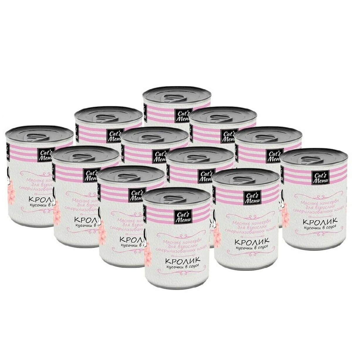 Купить Консервы Кэтс Меню для взрослых Стерилизованных кошек Кролик кусочки в соусе (цена за упаковку) 340г х 12шт