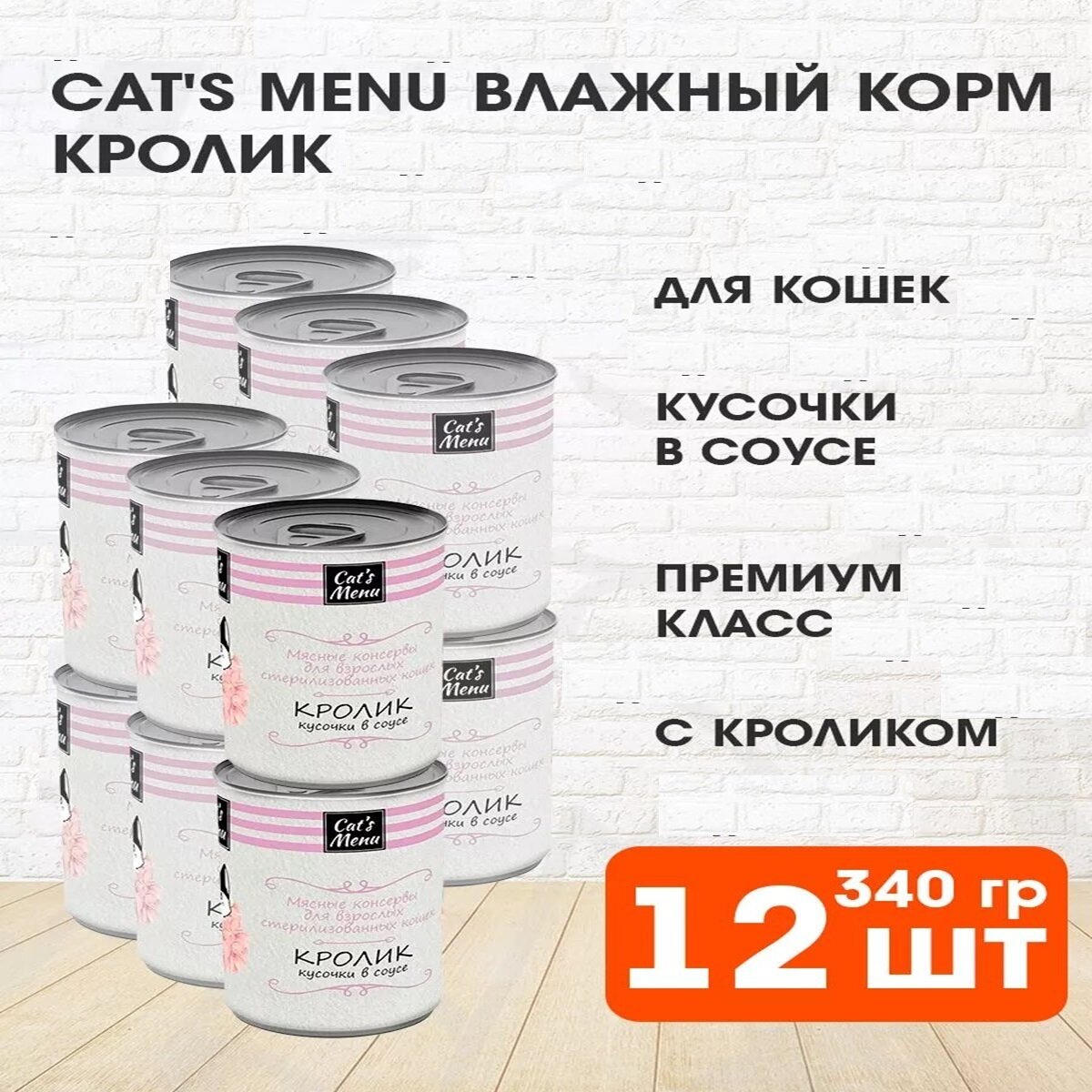 CAT’S MENU для взрослых кастрированных котов и стерилизованных кошек с кроликом в соусе (340 гр х 12 шт)