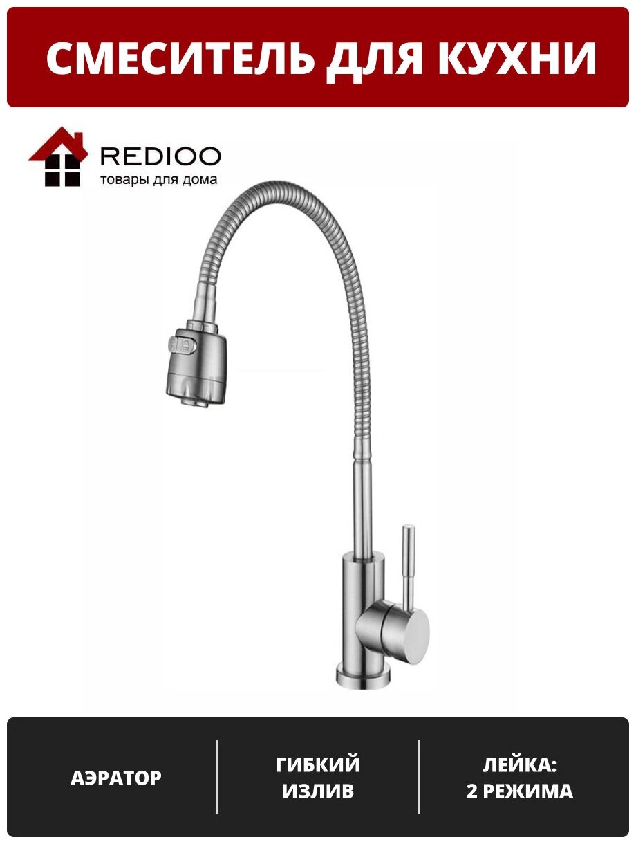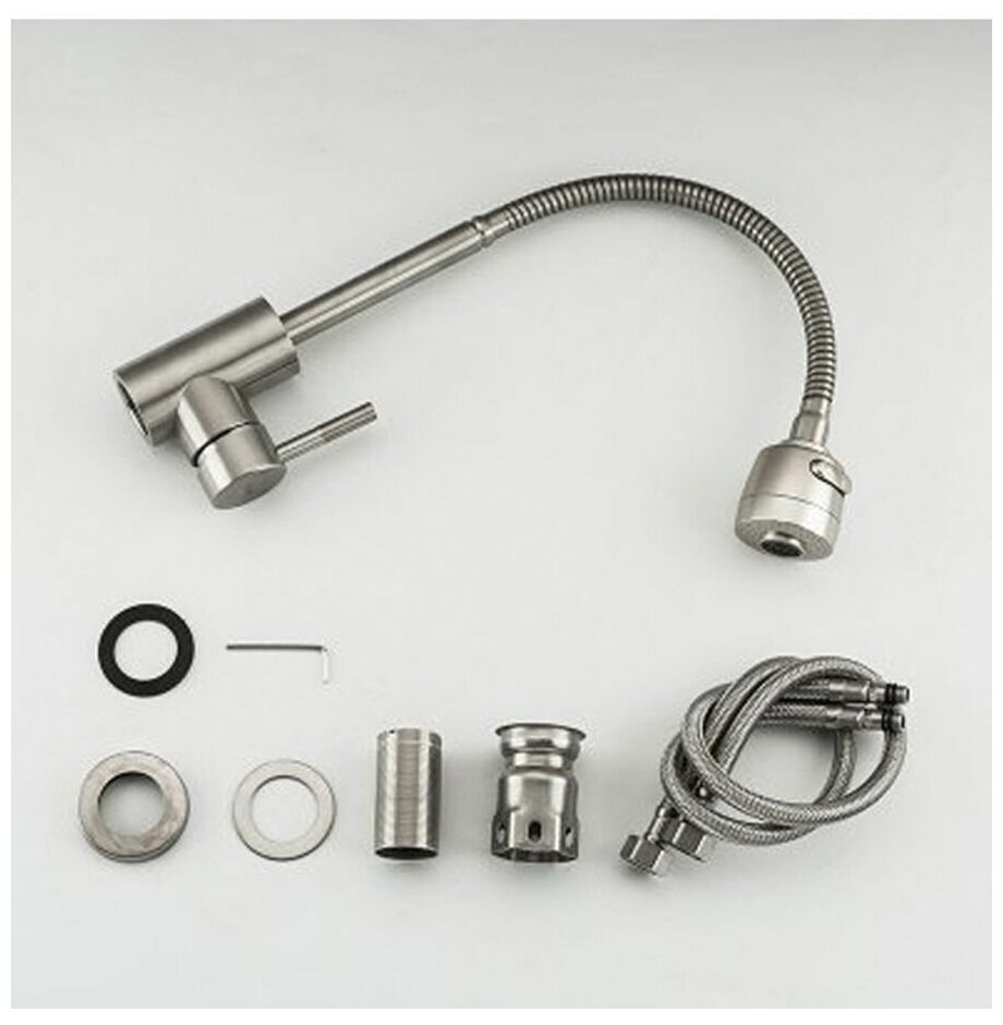 Смеситель для кухни однорычажный из нержавеющей стали с гибким изливом и двухрежимным аэратором A54509