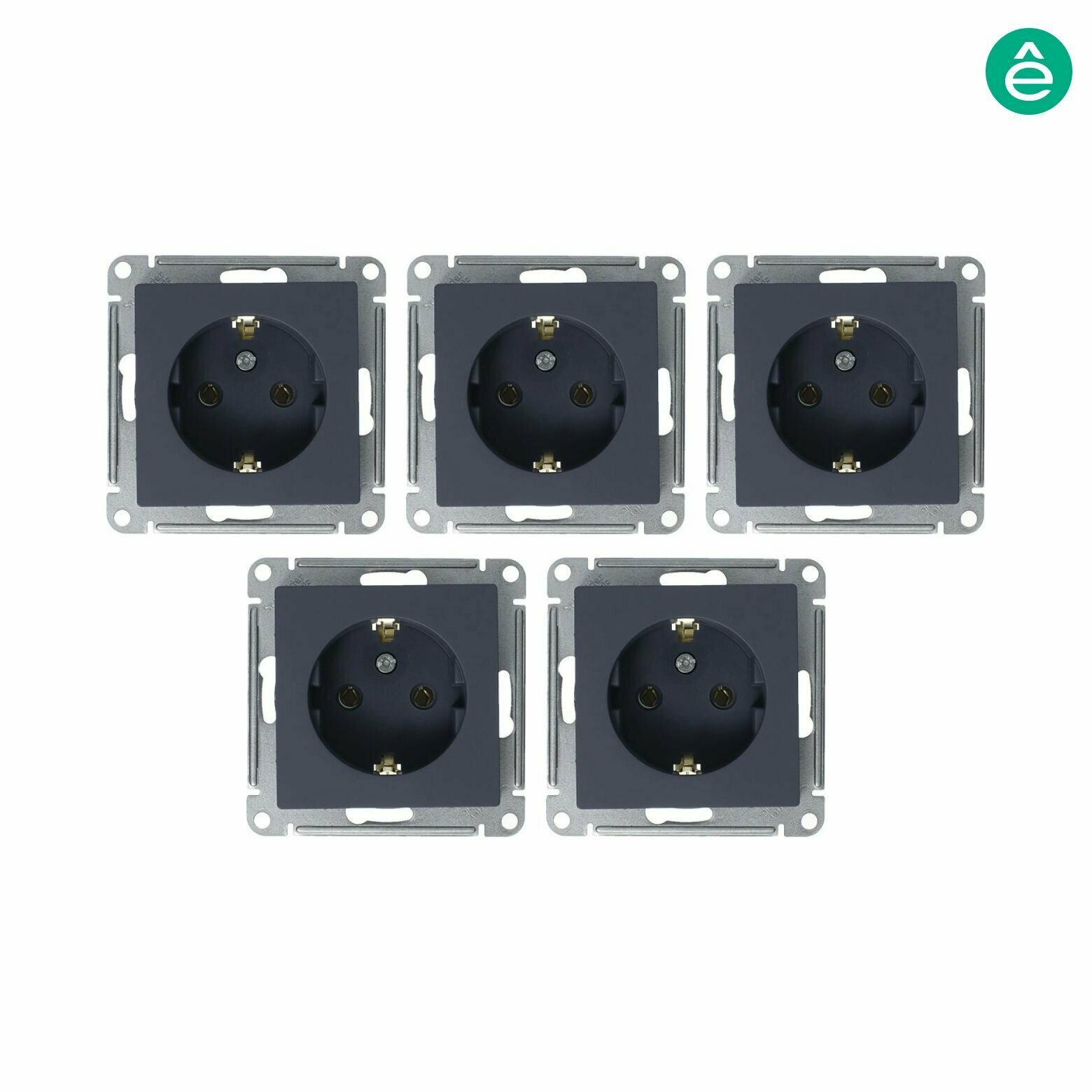 Розетка с заземлением, карбон Schneider Electric AtlasDesign (комплект 7шт)