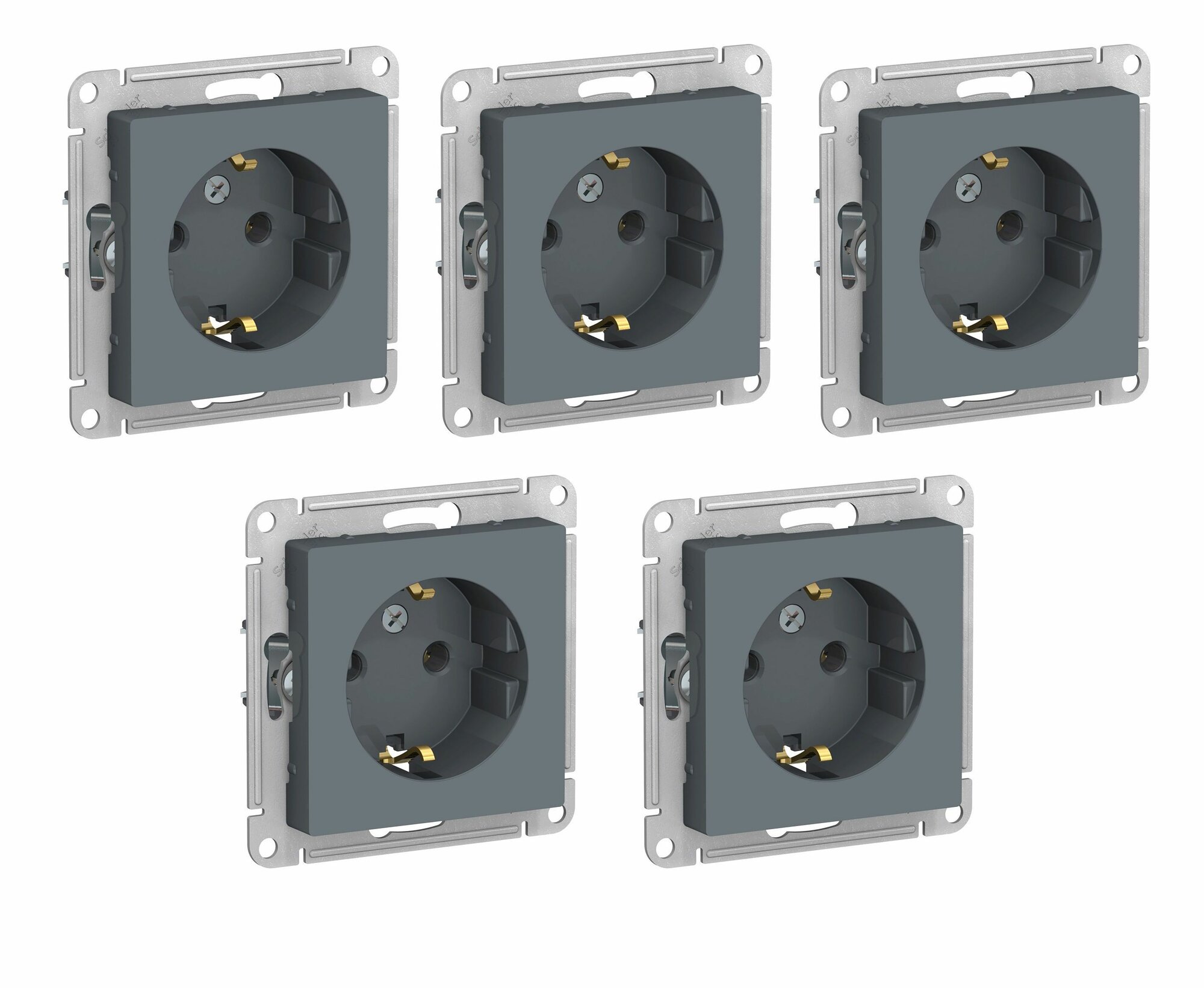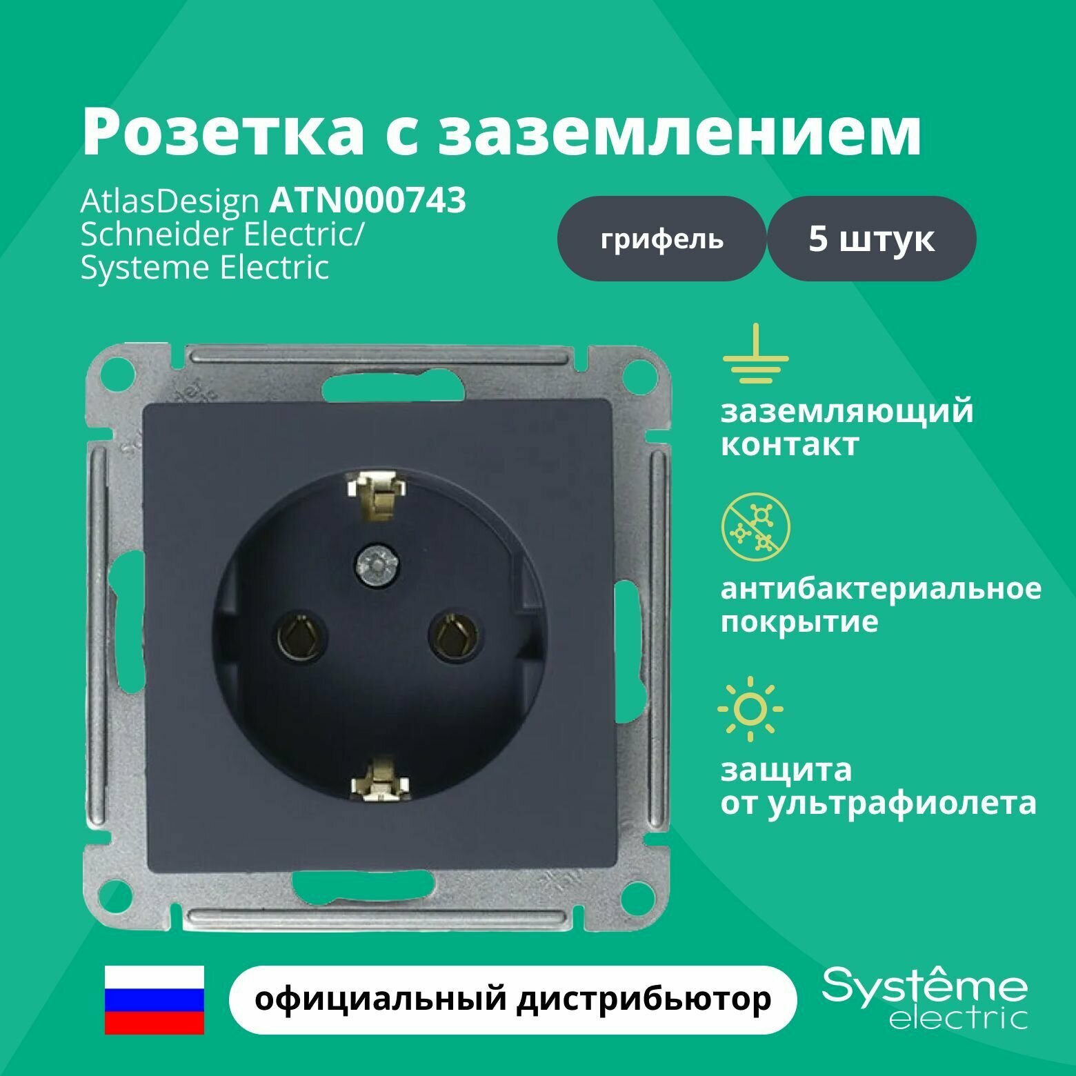 Купить Розетка с заземлением Systeme Schneider Electric ATLASDESIGN 16А механизм грифель ATN000743 комплект 5 шт