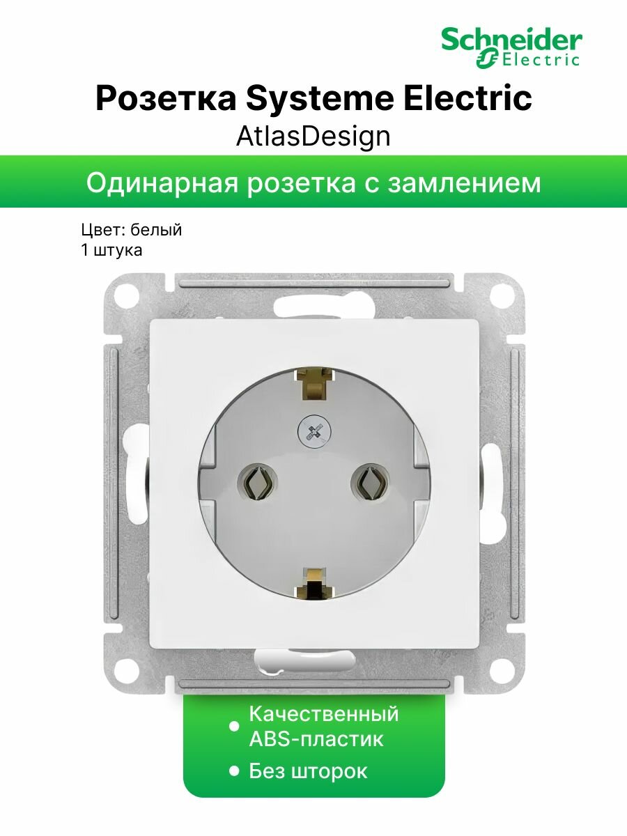 Розетка с заземлением, со шторками, белая Schneider Electric AtlasDesign (комплект 10шт)