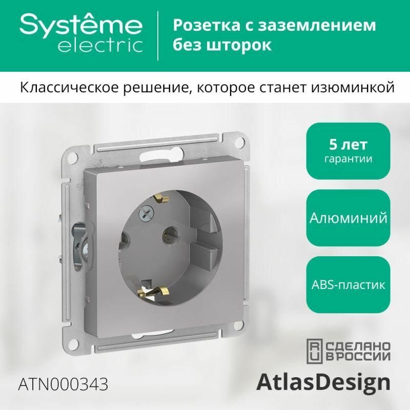 Розетка ATLASDESIGN, скрытый монтаж, с заземлением, алюминий | код. ATN000343 | Schneider Electric (8шт. в упак.)