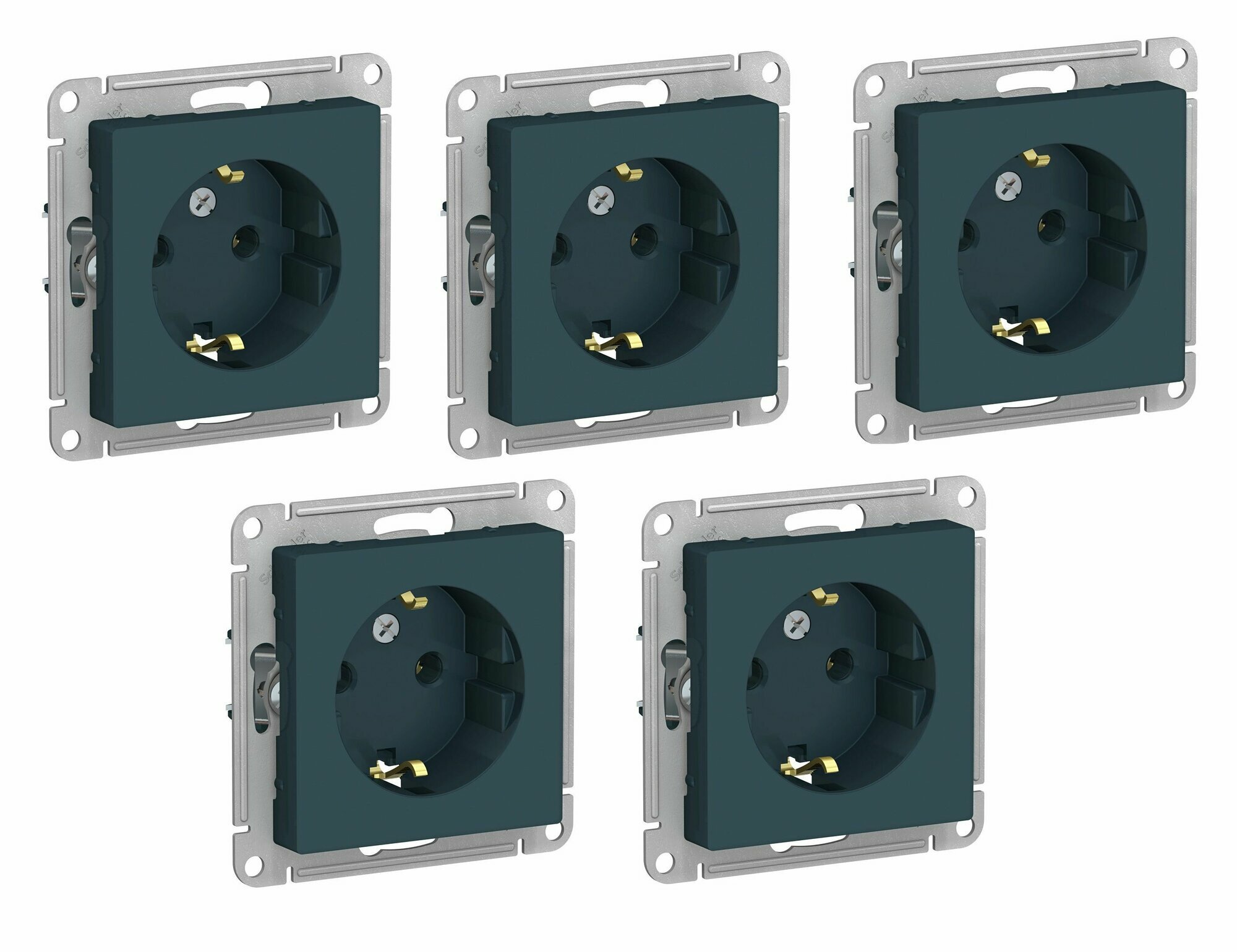 Купить Systeme (Schneider) Electric ATLASDESIGN розетка с заземлением, 16А, механизм, изумруд ATN000843 комплект 5 шт