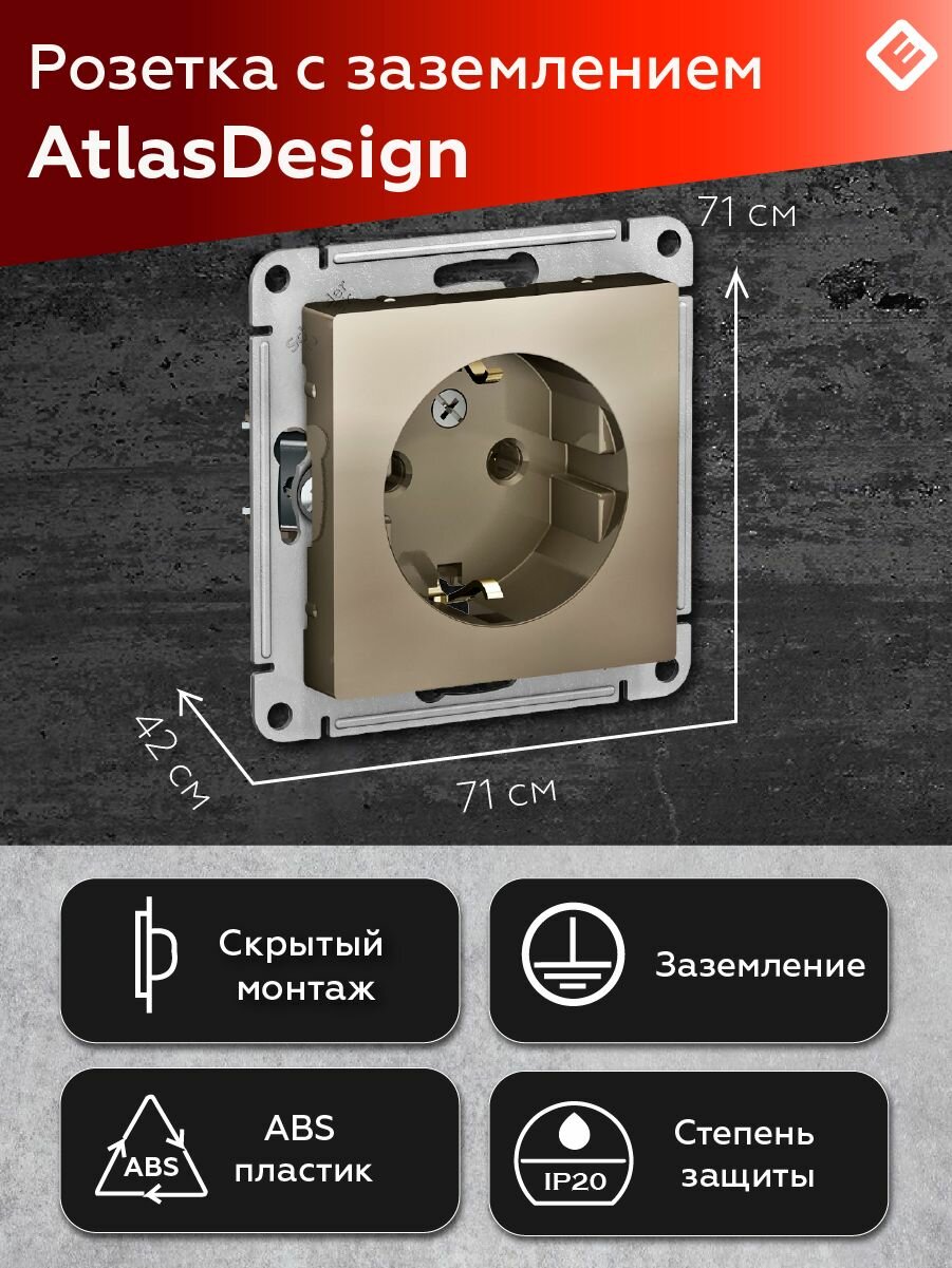 Ниже Вы можете прочитать отзывы на Розетка с заземлением, шампань Schneider Electric AtlasDesign (комплект 6шт), ознакомится с подробными характеристиками, посмотреть интересные обзоры и фотографии на Розетка с заземлением, шампань Schneider Electric AtlasDesign (комплект 6шт).