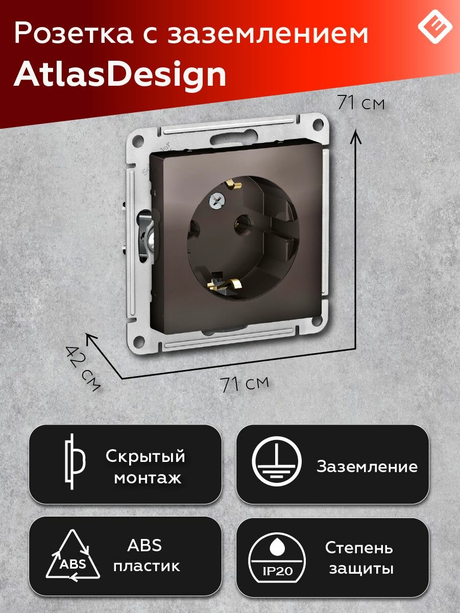Розетка ATLASDESIGN, скрытый монтаж, с заземлением, мокко | код. ATN000643 | Schneider Electric (2шт. в упак.)