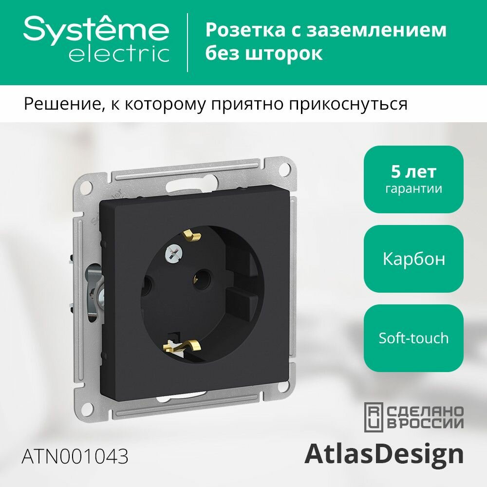 Купить 10 шт. Systeme Electric AtlasDesign Карбон Розетка с заземлением, 16А, механизм, ATN001043