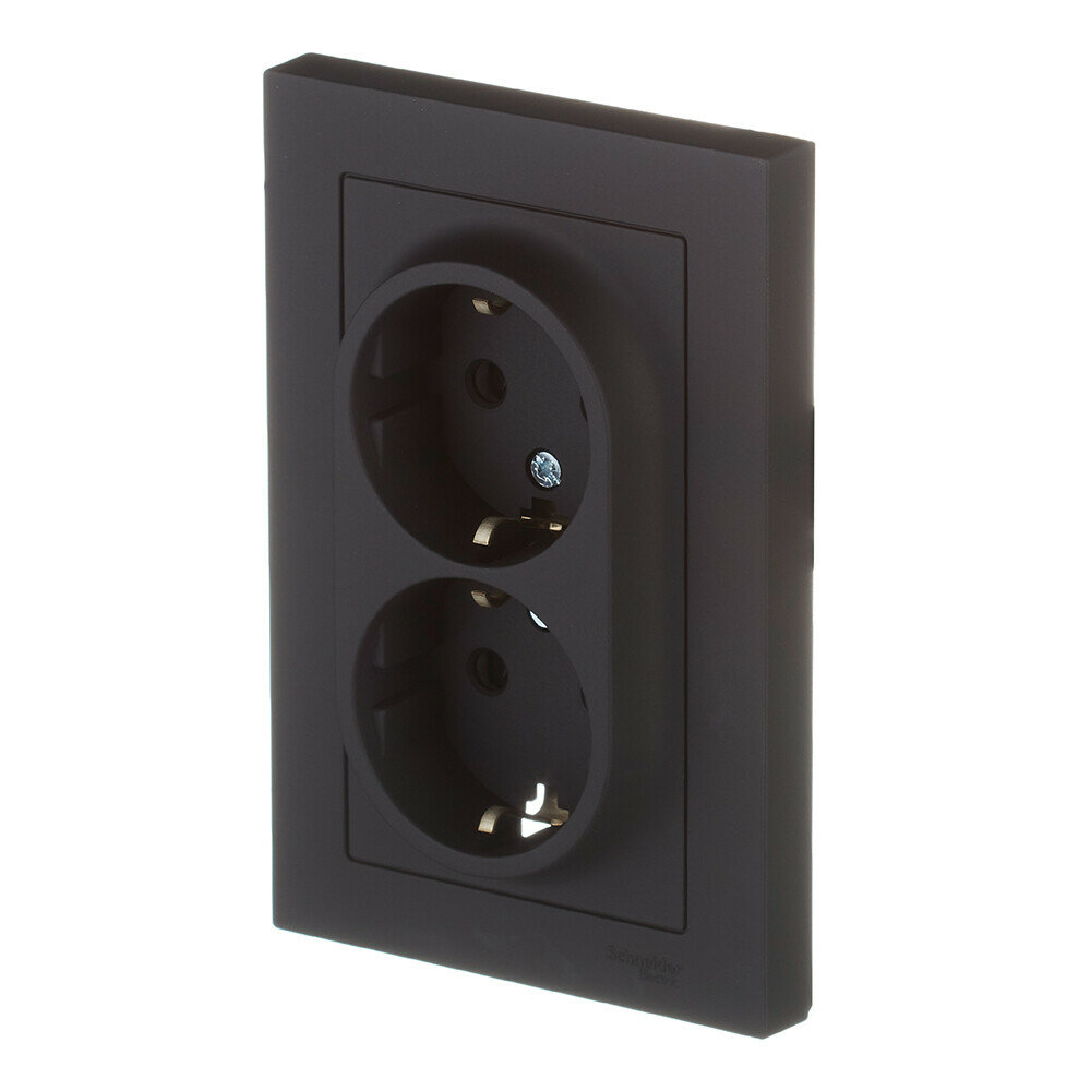 Systeme Electric AtlasDesign Базальт Розетка двойная без заземления , со шторками,16А, в сборе с рамкой ATN001422