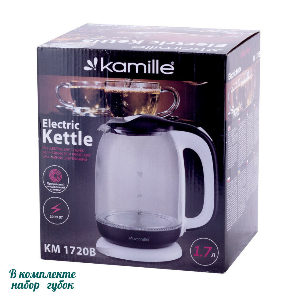 Чайник электрический 1,7 л. стеклянный Kamille KM 1720B (1,7 л. / белый/черный)
