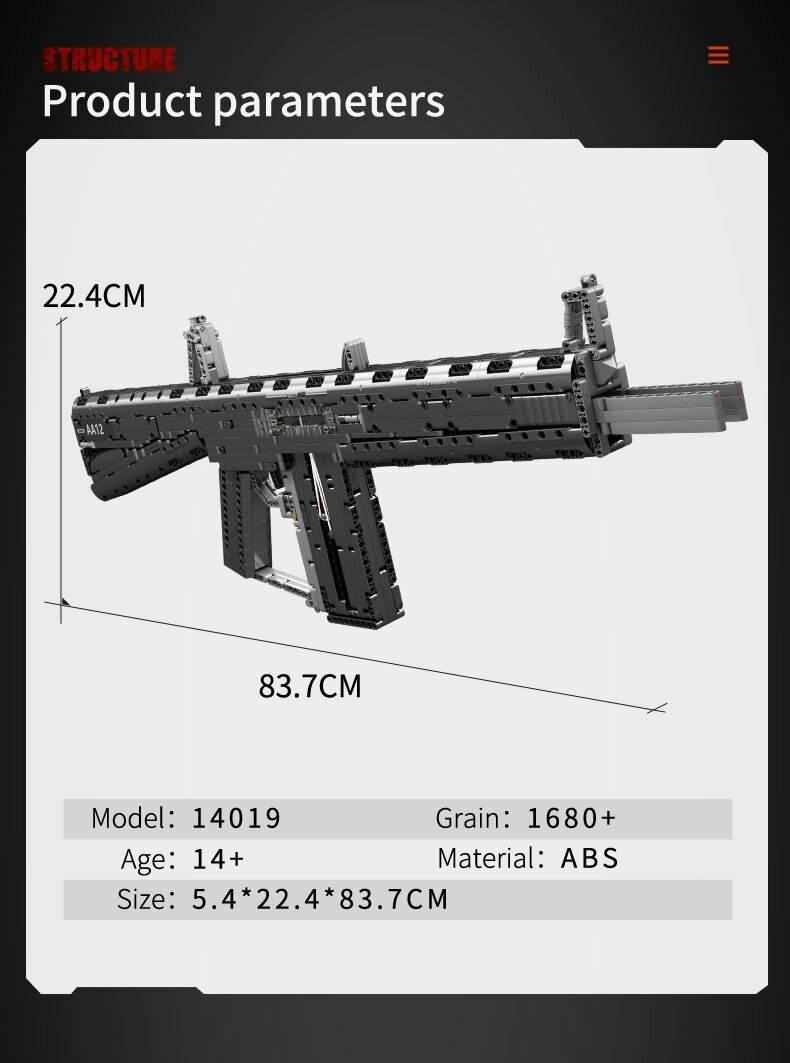 СохранитьКонструктор Mould King 14019 Автоматическое ружье MPSAA-12 из 1680 деталей, серии Автоматы и пистолеты, Игрушки для мальчико интересное: