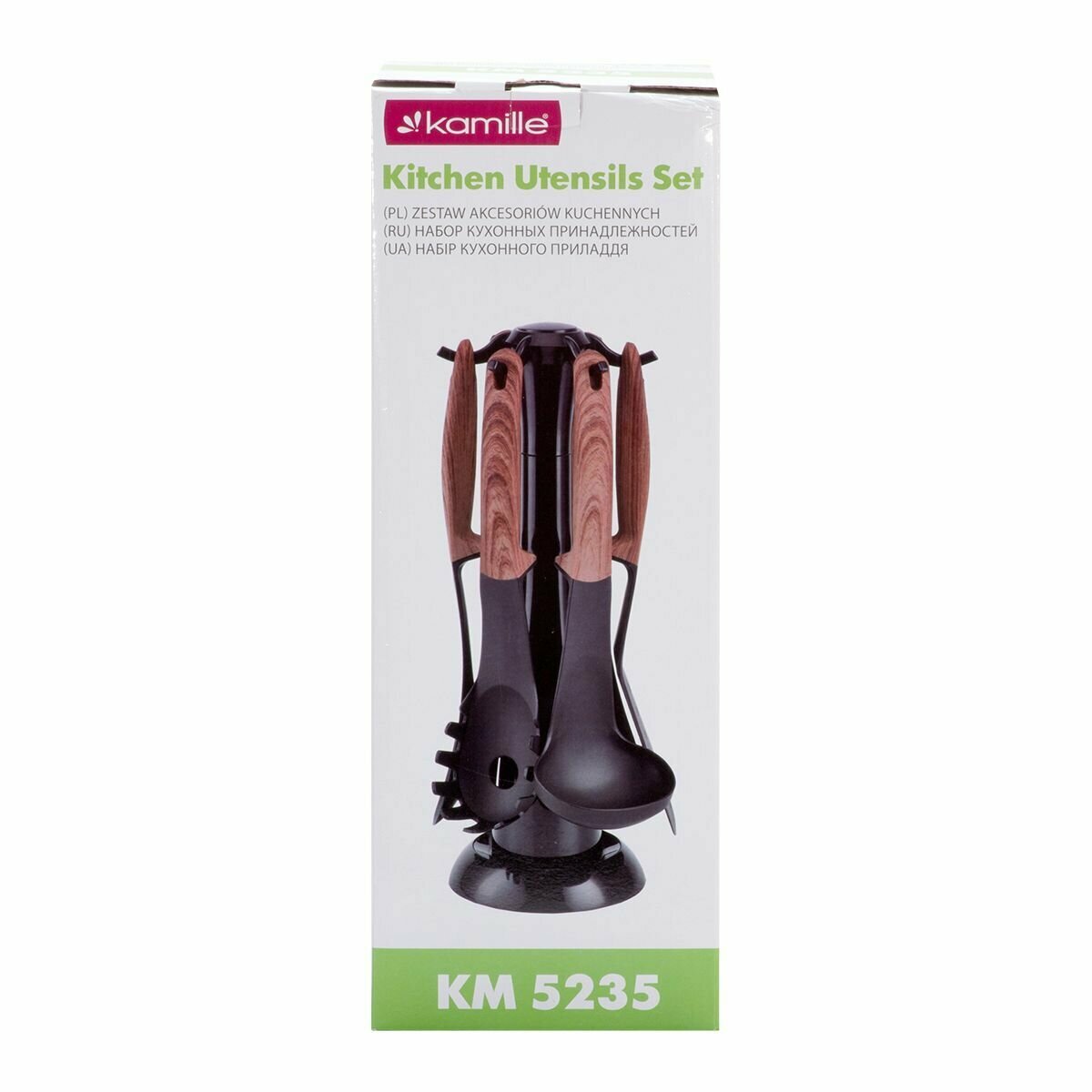 Набор кухонных принадлежностей Kamille KM-5236 (7 пр) нейлоновые с ручкой под дерево на подставке