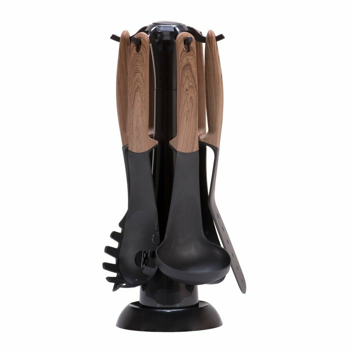 Набор кухонных принадлежностей с подставкой 7 предметов нейлоновые с ручкой под дерево KAMILLE