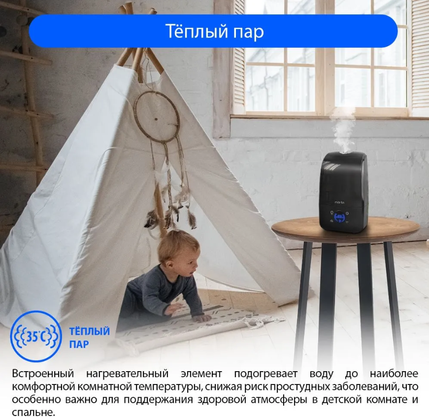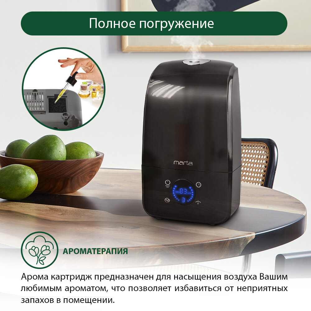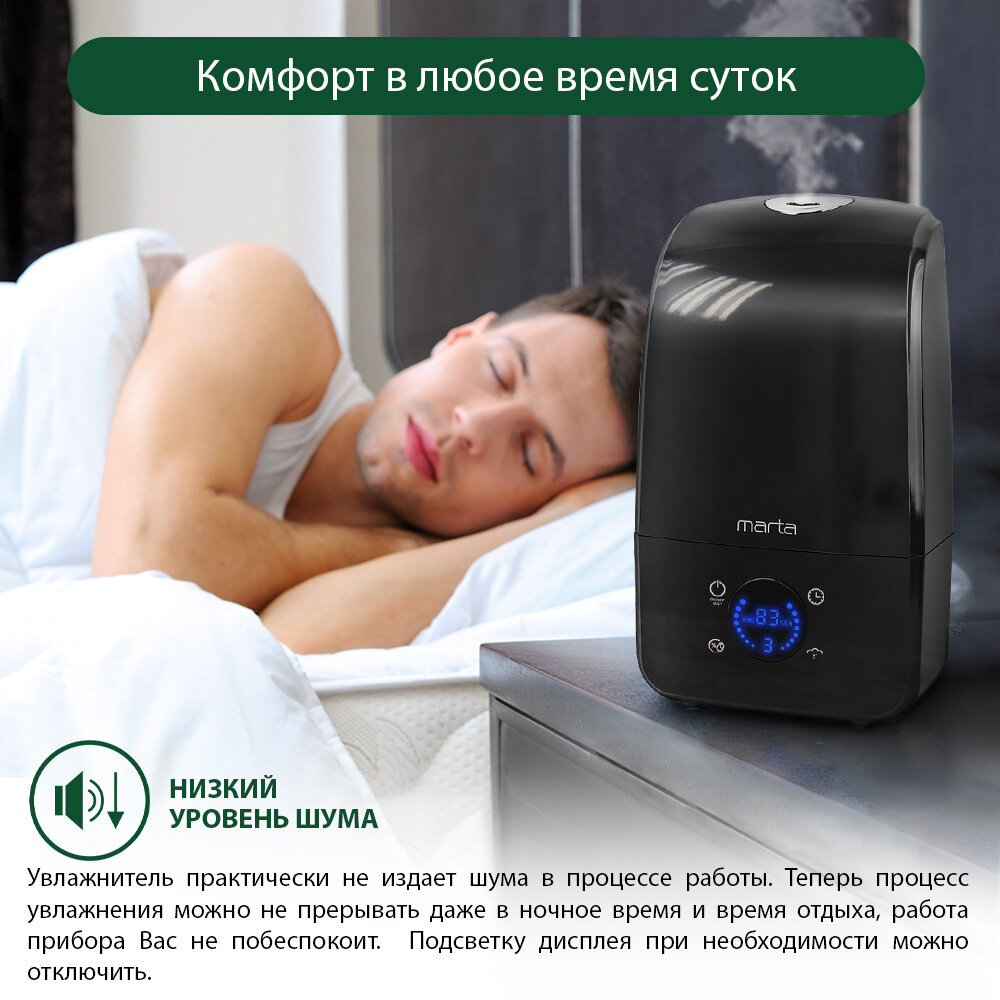 Увлажнитель воздуха MARTA MT-2381, черный жемчуг интересное: