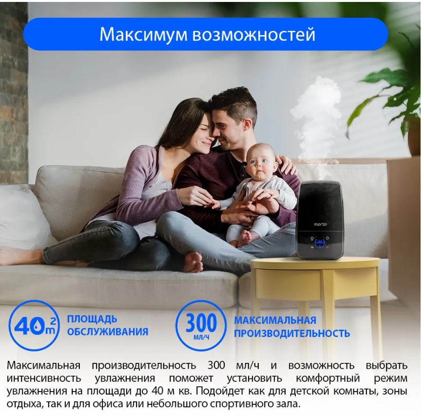 | Плюсы: | Быстро нагоняет влажность в комнате |