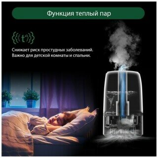 | Плюсы: | Отлично увлажняет воздух, есть 3 режима, на максимальном прям мощно парит.