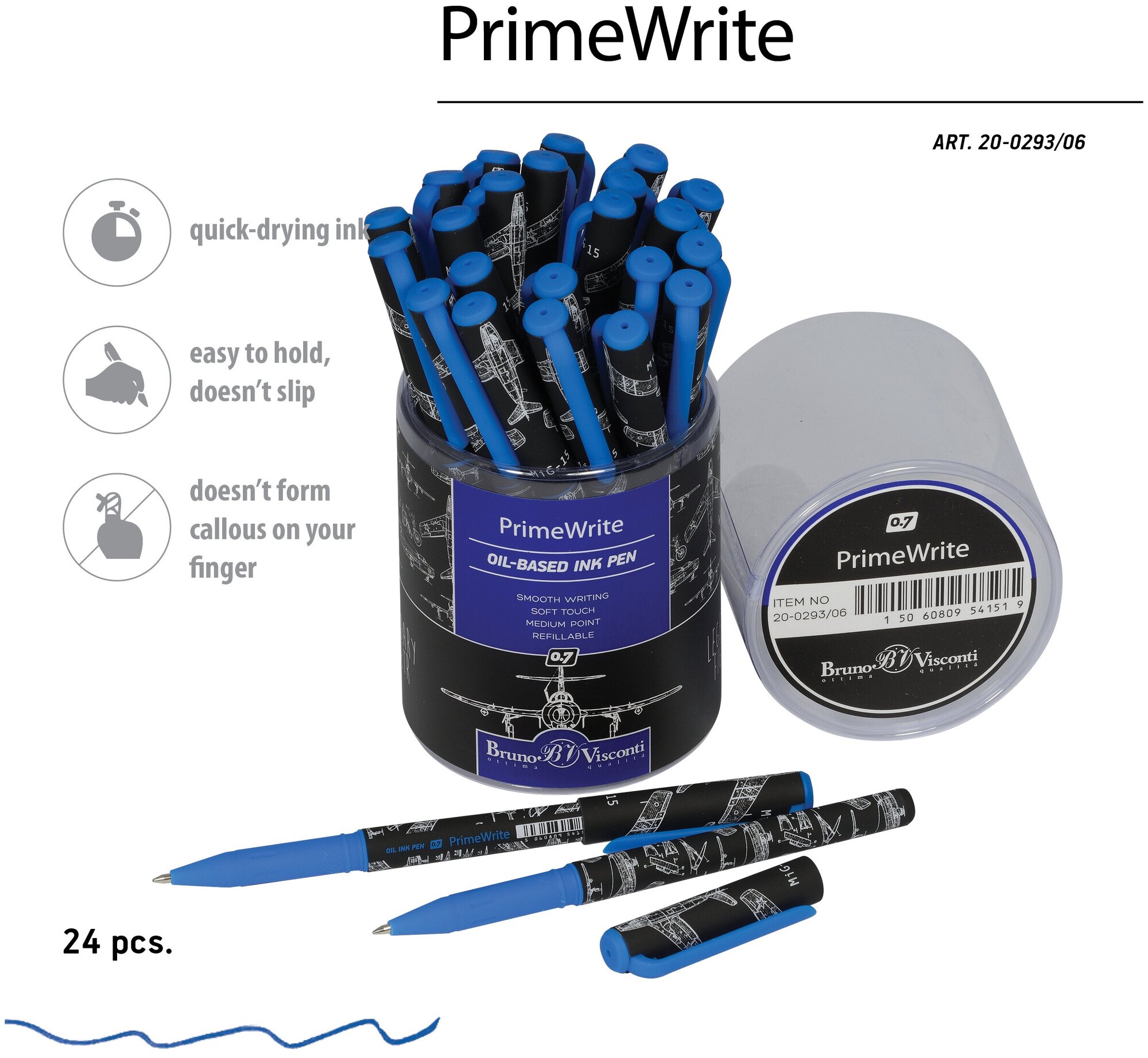 Ручка "PrimeWrite. Чертежи. Самолет" С чернилами на масляной основе, 0.7 ММ, синяя