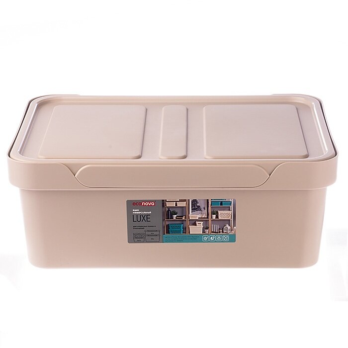 Ящик 38х27,6х14см 12л ECONOVA LUXE универсальный с крышкой светло-бежевый пластик