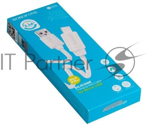 Купить Кабель USB Harmony, USB - MicroUSB, 2.4А, 1м, белый BOROFONE BX55