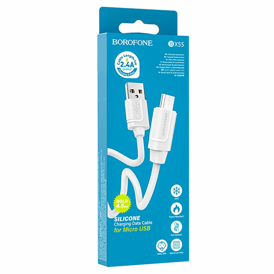 Data кабель USB Borofone BX55 micro usb, 1m, белый