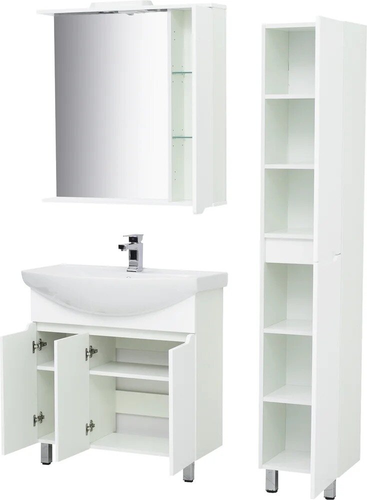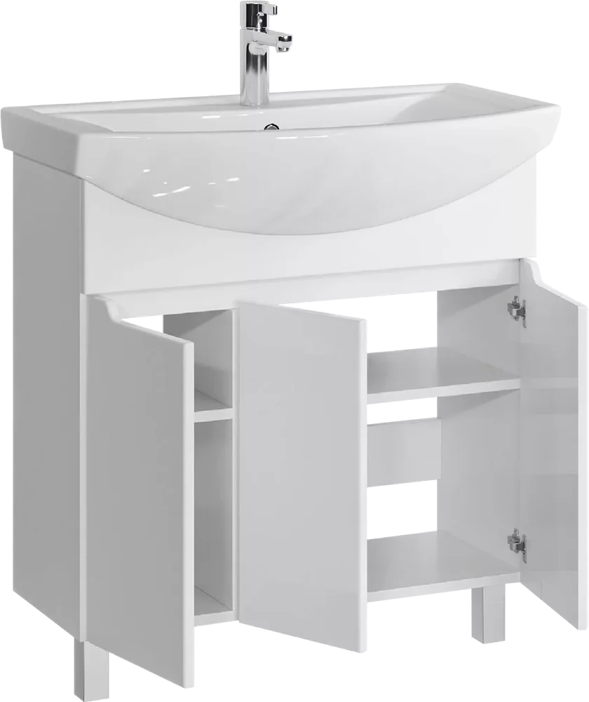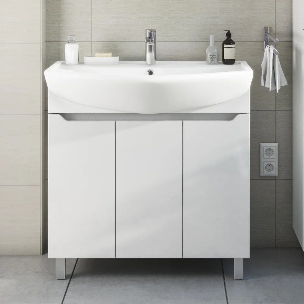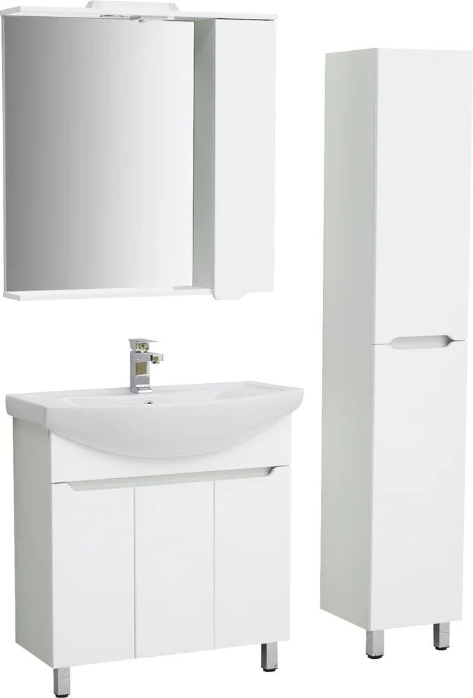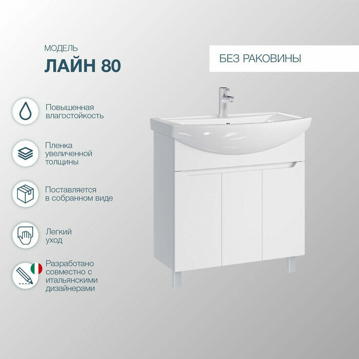 Тумба напольная SanStar Лайн 80 с раковиной Балтика 80 (комплект) для ванной комнаты, белая