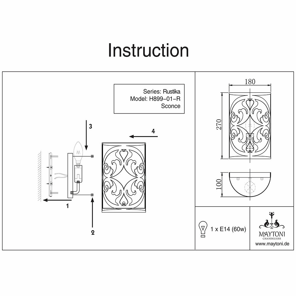 Бра с 1 плафоном Maytoni Настенный светильник Maytoni Rustika H899-01-R