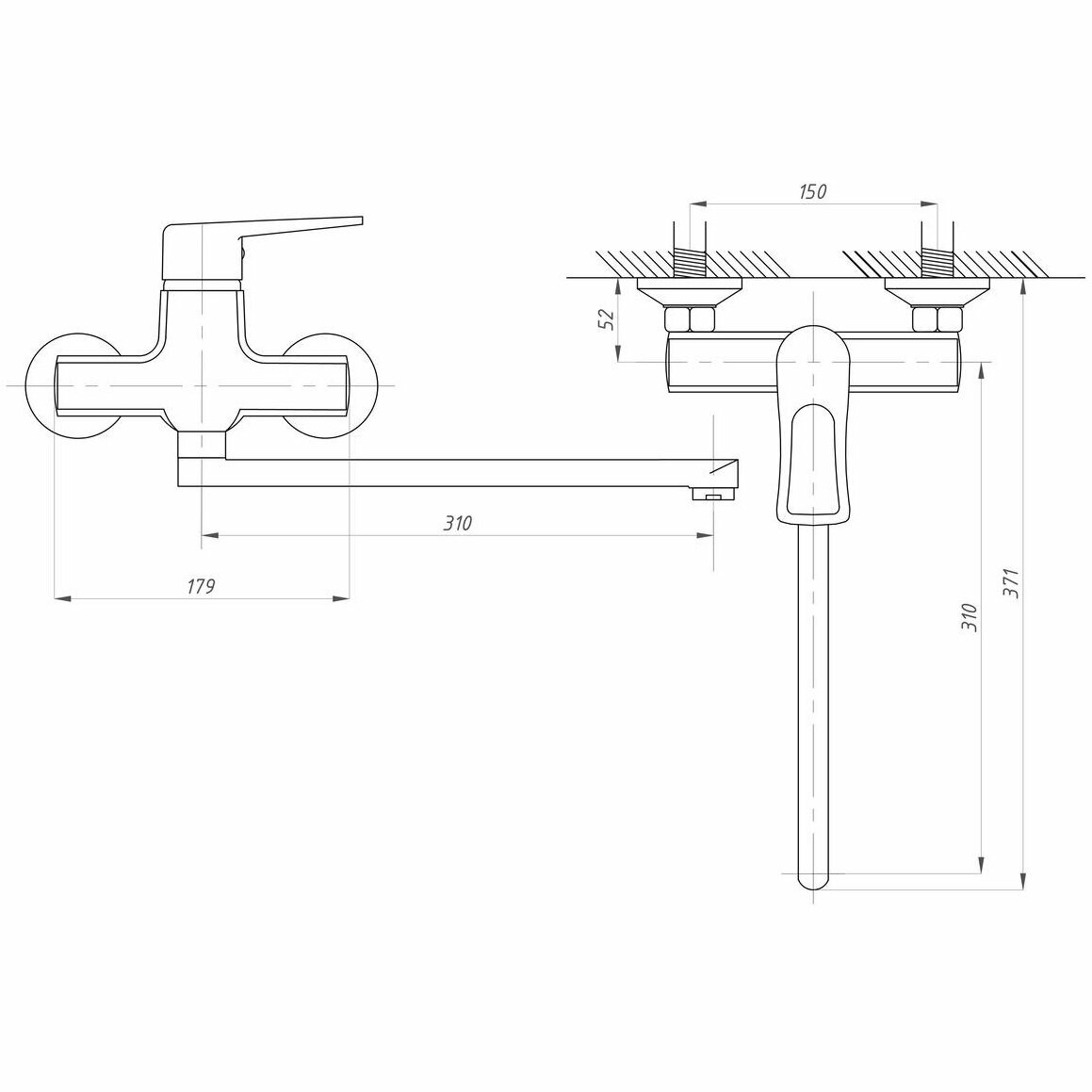 Смес/ванна ПСМ-777-017 однор дл/изл плоск Lобр в/к плюс Профсан, профсан PSM-777-017 (1 шт.)