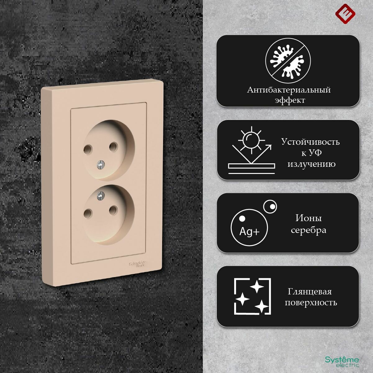 Розетка электрическая двухместная Systeme Electric Atlas Design без заземления в сборе 16А, Бежевый ATN000220 - 5 шт.
