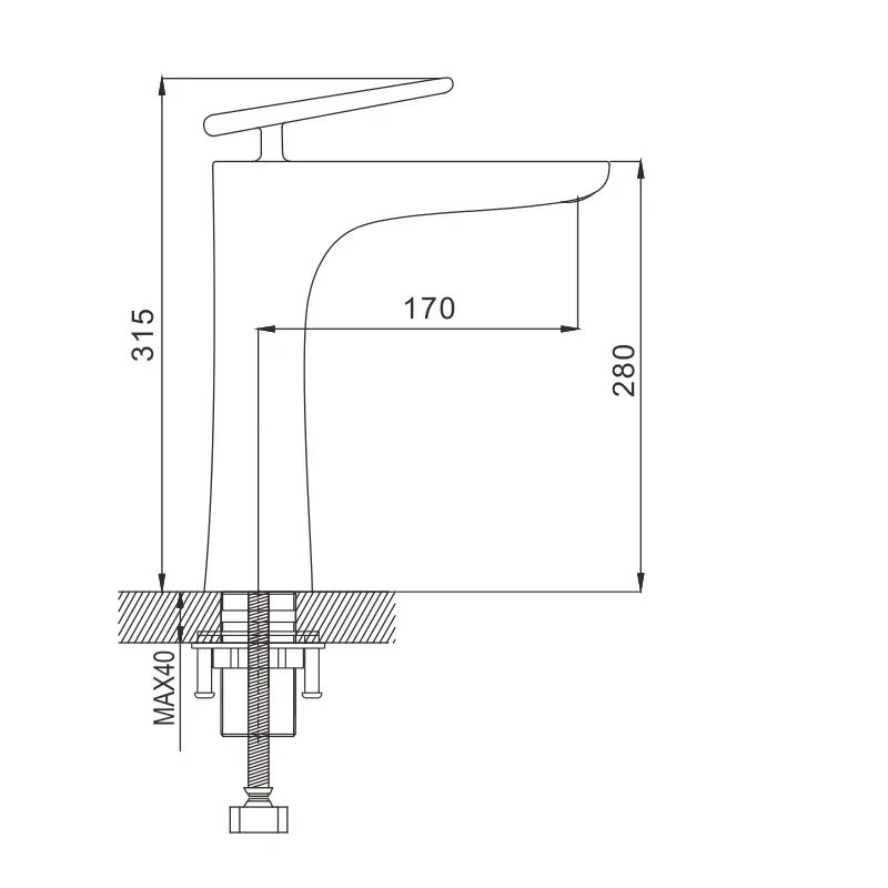 Смеситель для умывальника с литым изливом, одноручный. Ц10