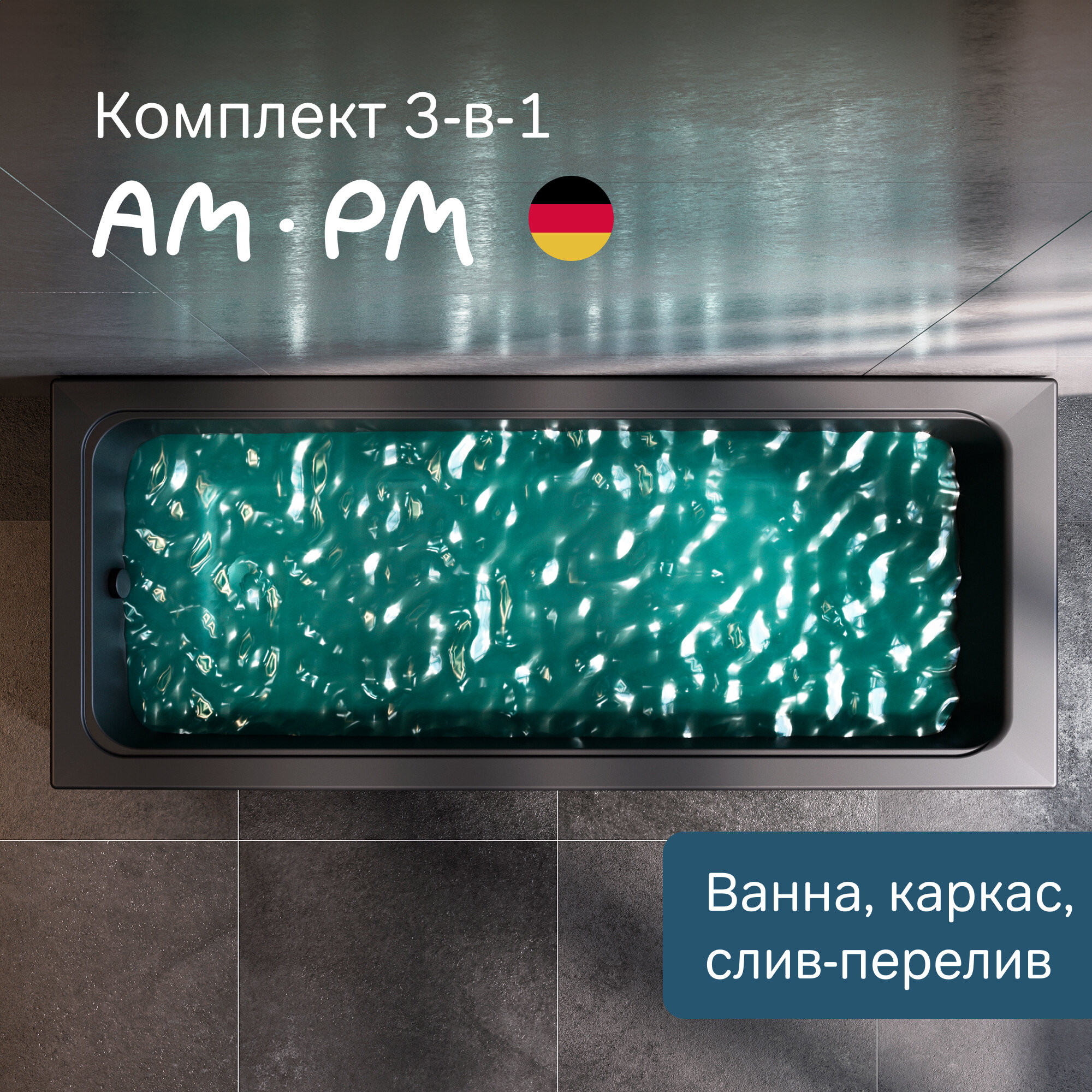 СохранитьВанна акриловая AM.PM Gem 170x70 комплект 3 в 1: черная ванна, каркас, слив-перелив, литьевой акрил, вакуумная формовка, усиленный корпус, интересное: