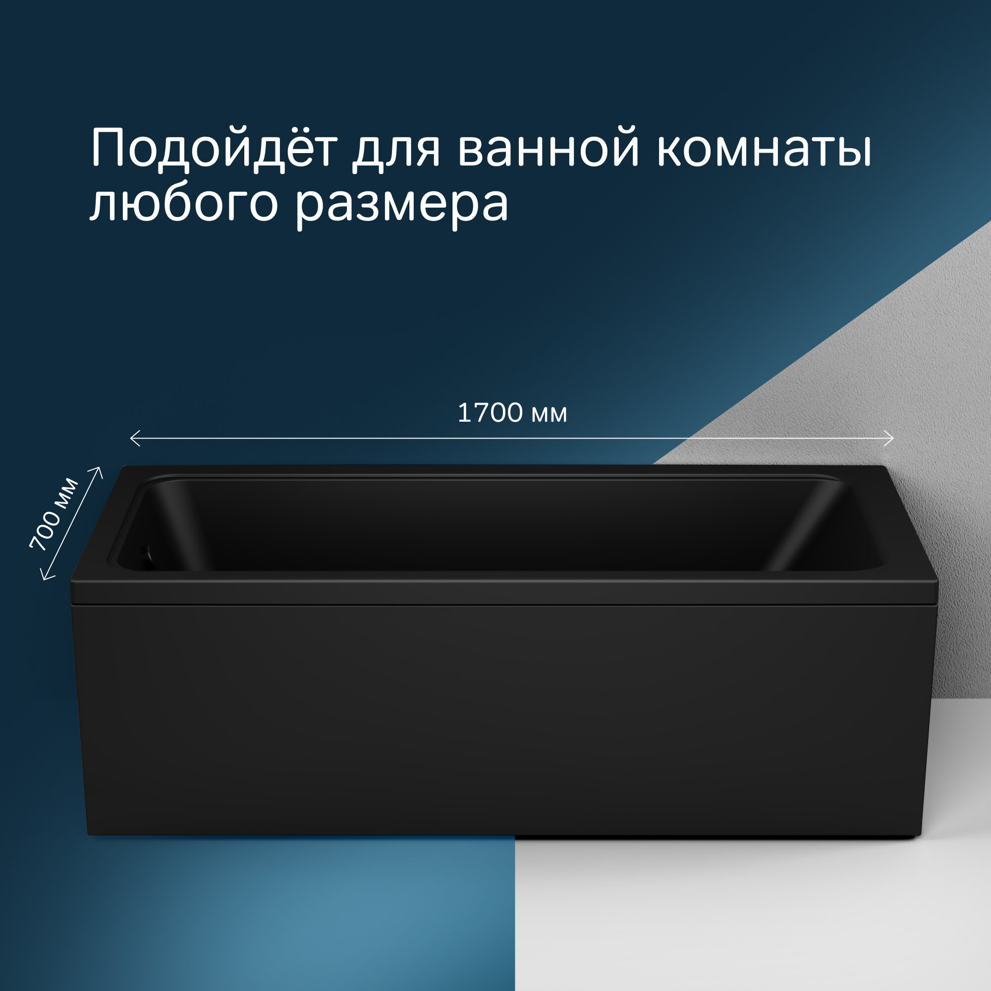 Купить Ванна акриловая AM.PM Gem 170x70 комплект 3 в 1: черная ванна, каркас, слив-перелив, литьевой акрил, вакуумная формовка, усиленный корпус,