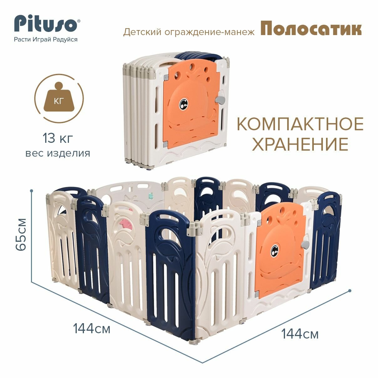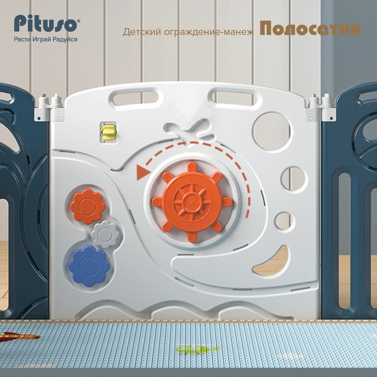 Манеж детский игровой Pituso Полосатик , напольный, игровая панель, легкая сборка, цвет синий интересное: