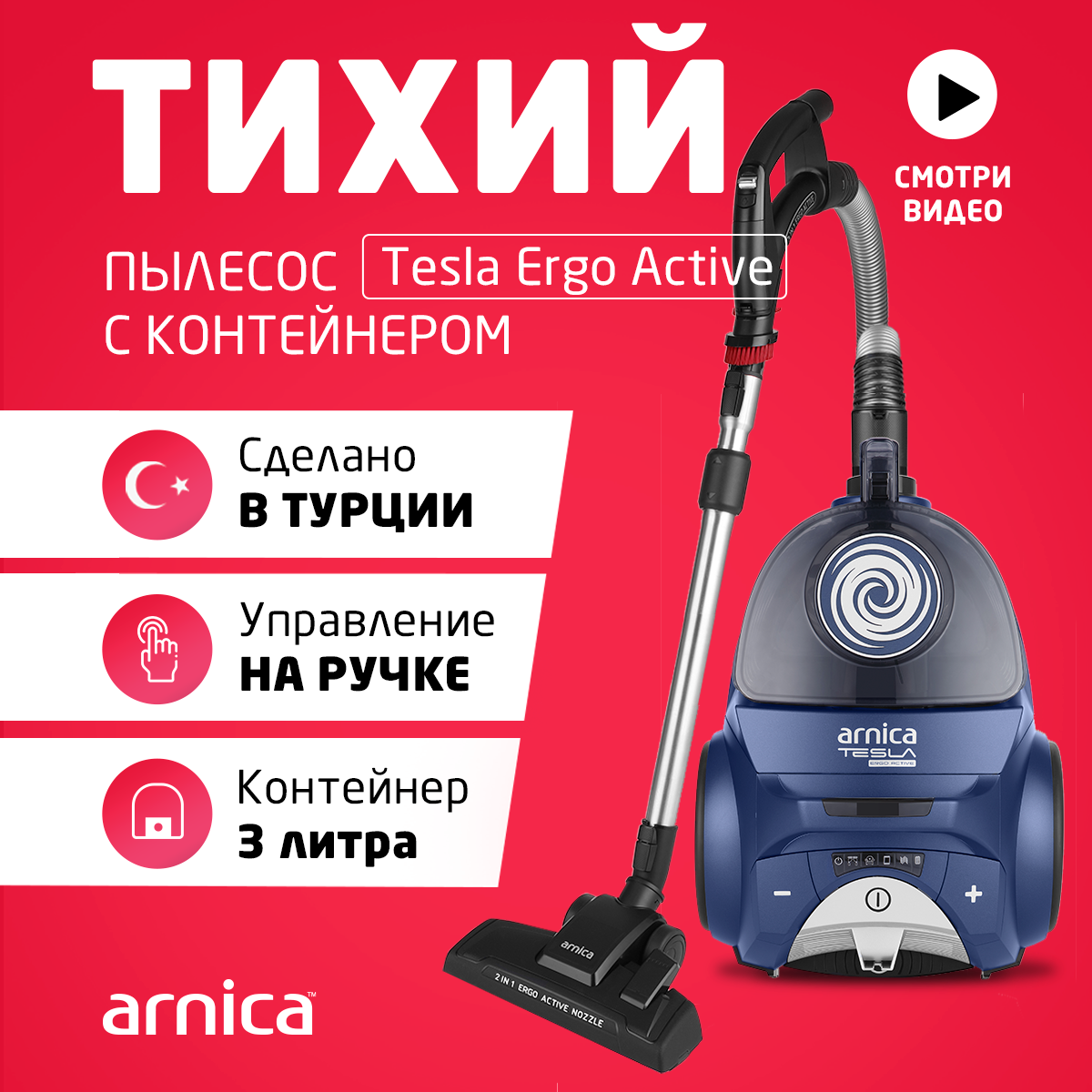 Пылесос ARNICA Tesla Ergo синий (ET14341) интересное: