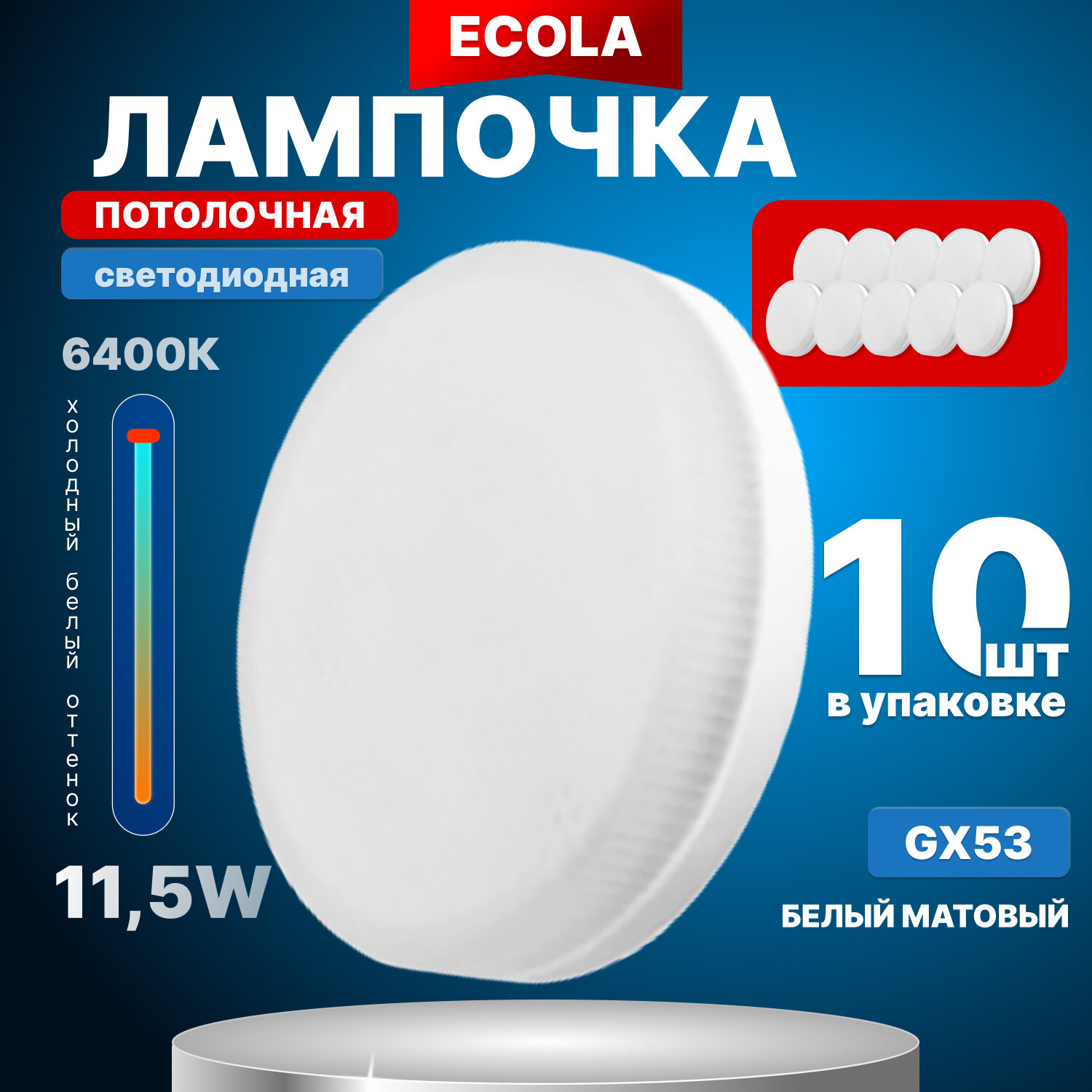 Светодиодная лампа 11,5W цоколь GX53 6400K Ecola T5DD11ELC 10 шт.