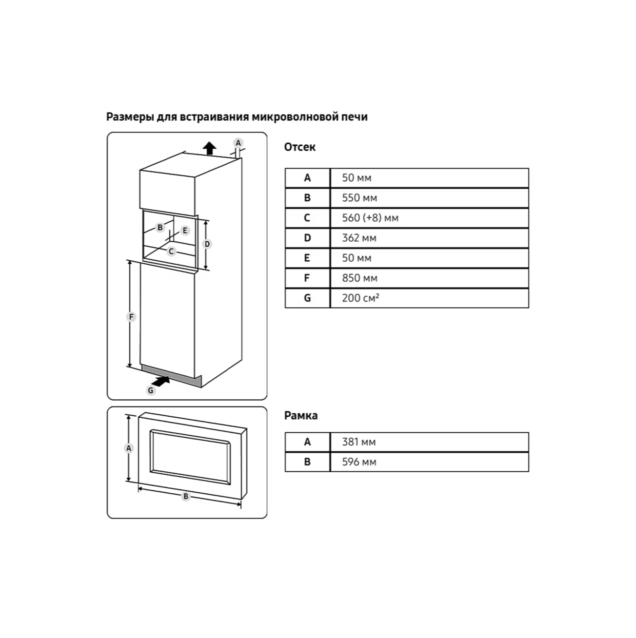 Микроволновая печь встраиваемая Samsung MS23A7118A, черный