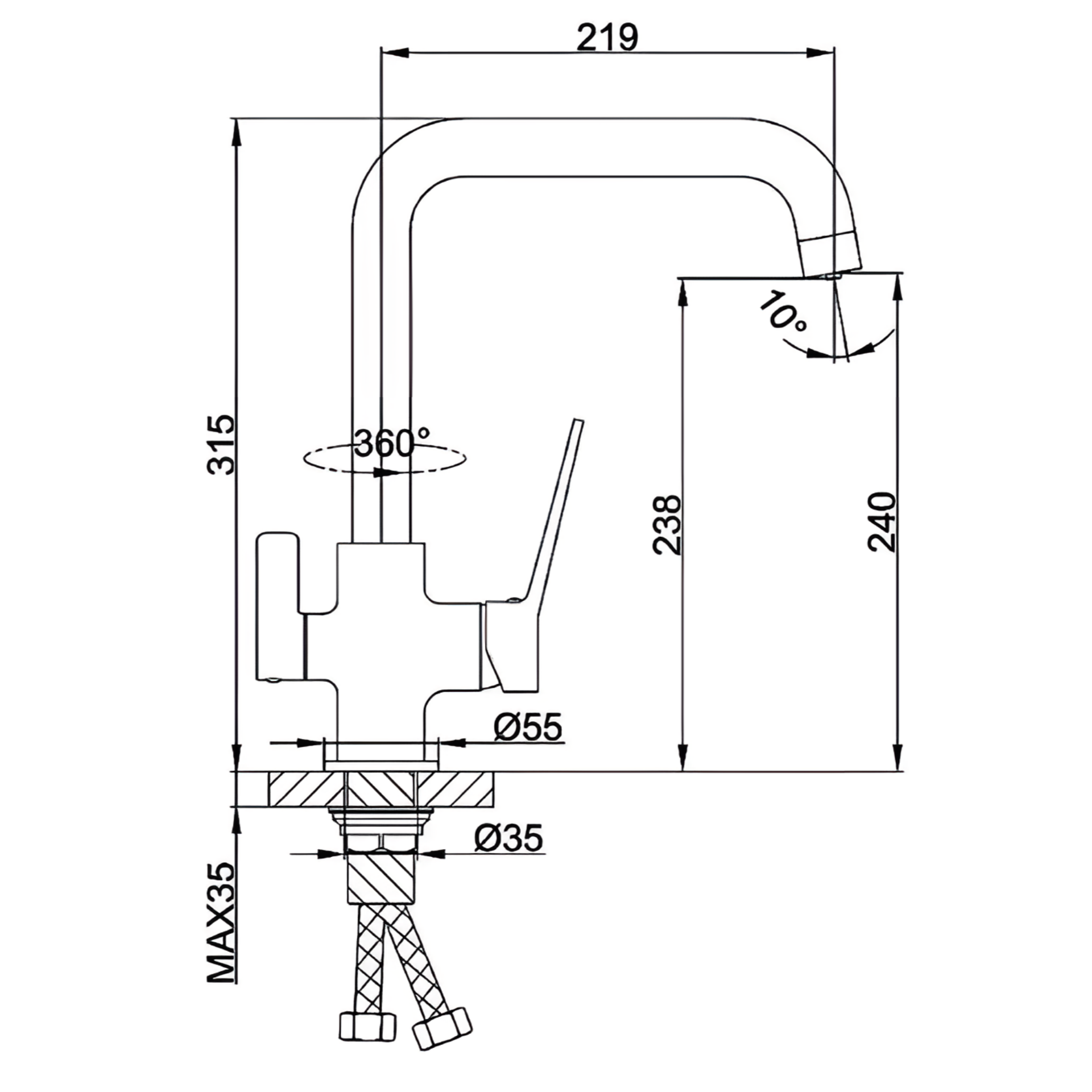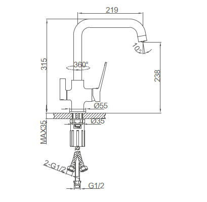 | Высота излива | 238 мм |