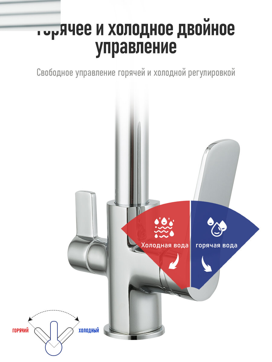 | Плюсы: | Интересный смеситель, наличие крана под фильтр. |