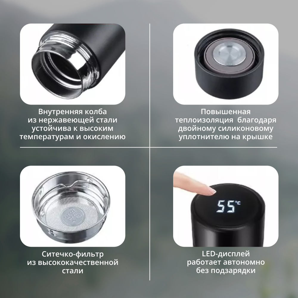 СохранитьТермос с LCD дисплеем / Термос с датчиком (индикатором) температуры / Термобутылка / Автокружка, черный 0,5л интересное: