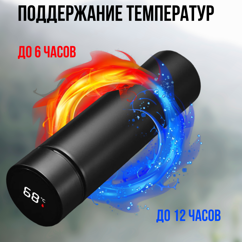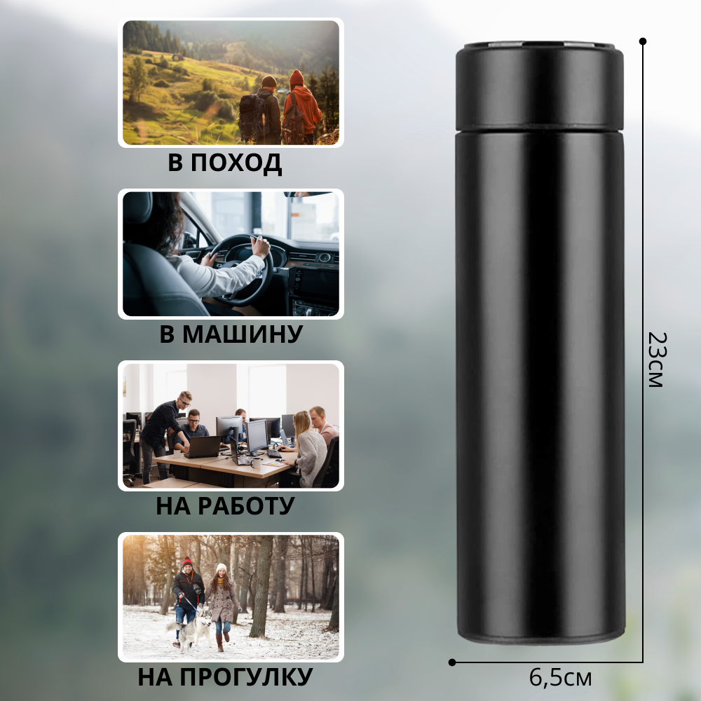 Купить Термос с LCD дисплеем / Термос с датчиком (индикатором) температуры / Термобутылка / Автокружка, черный 0,5л