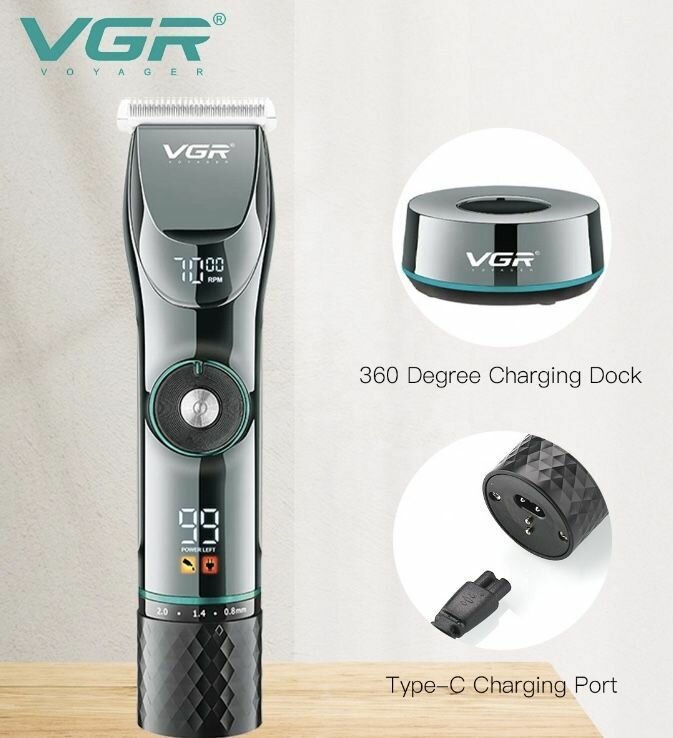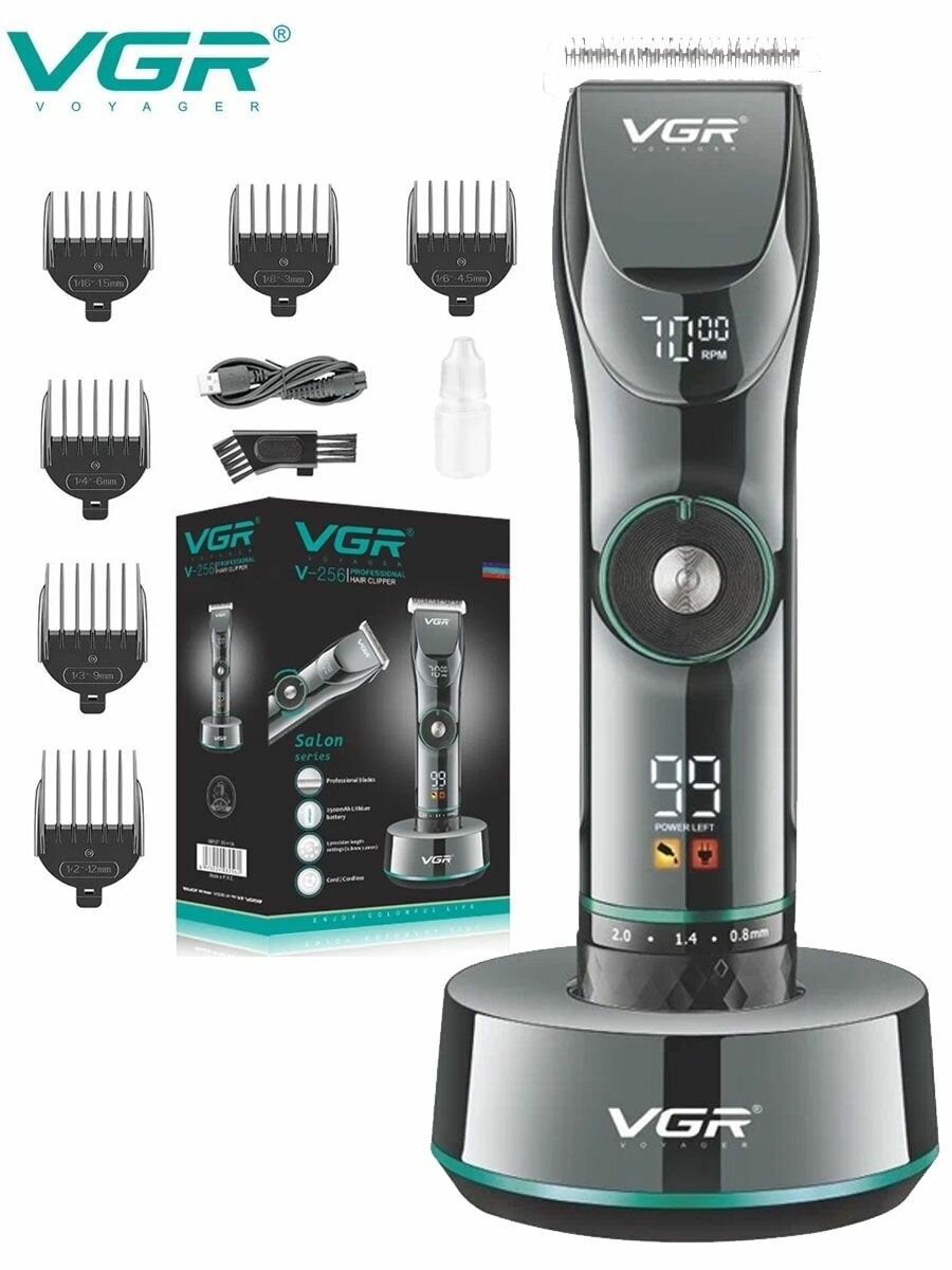 Машинка для стрижки волос и бороды VGR V-671, беспроводная, LED-дисплей, черная