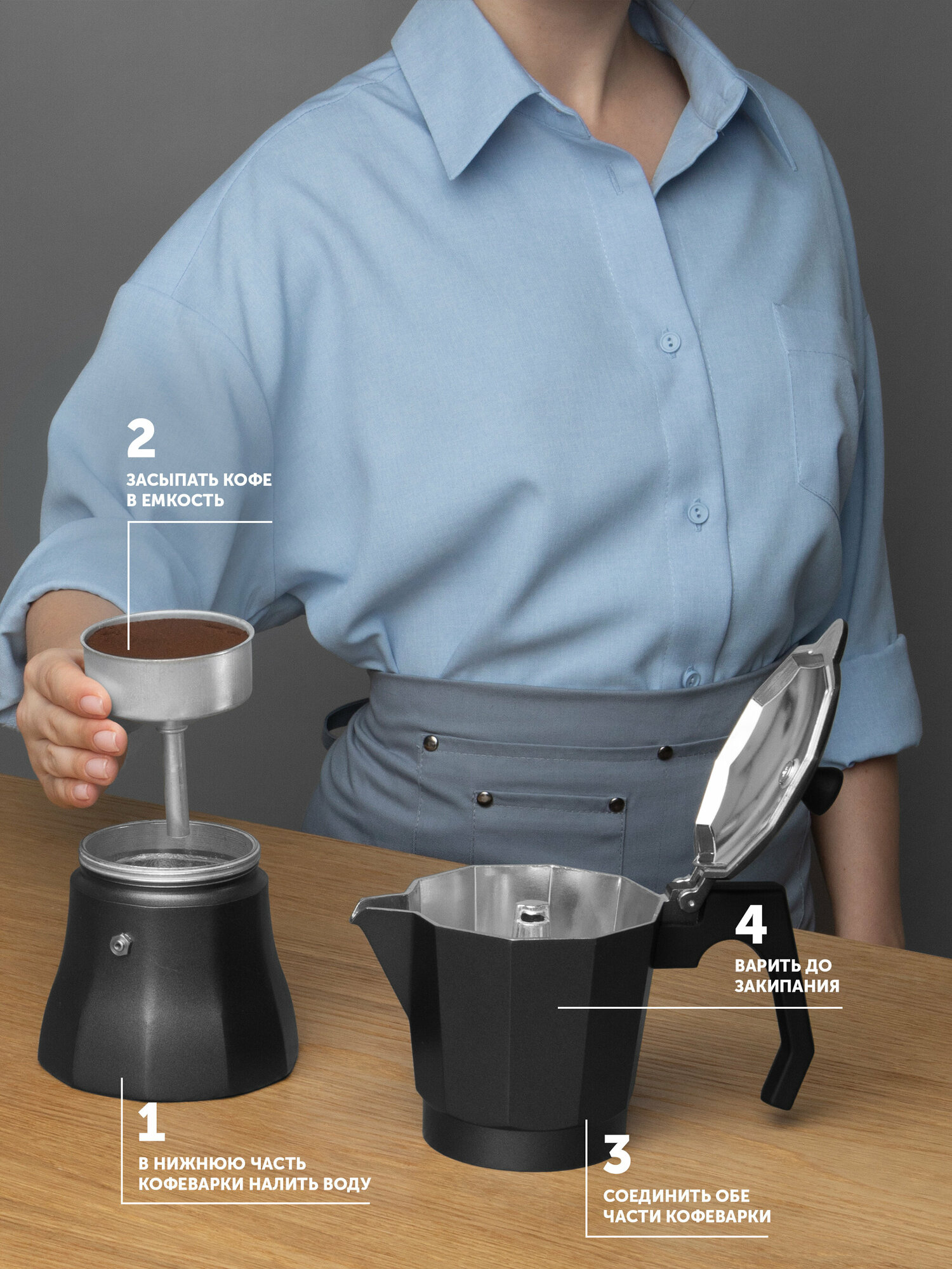 | Плюсы: | Выглядит стильно и надежно, кофе вкусный, да и подходит для разных видов кухонных плит |