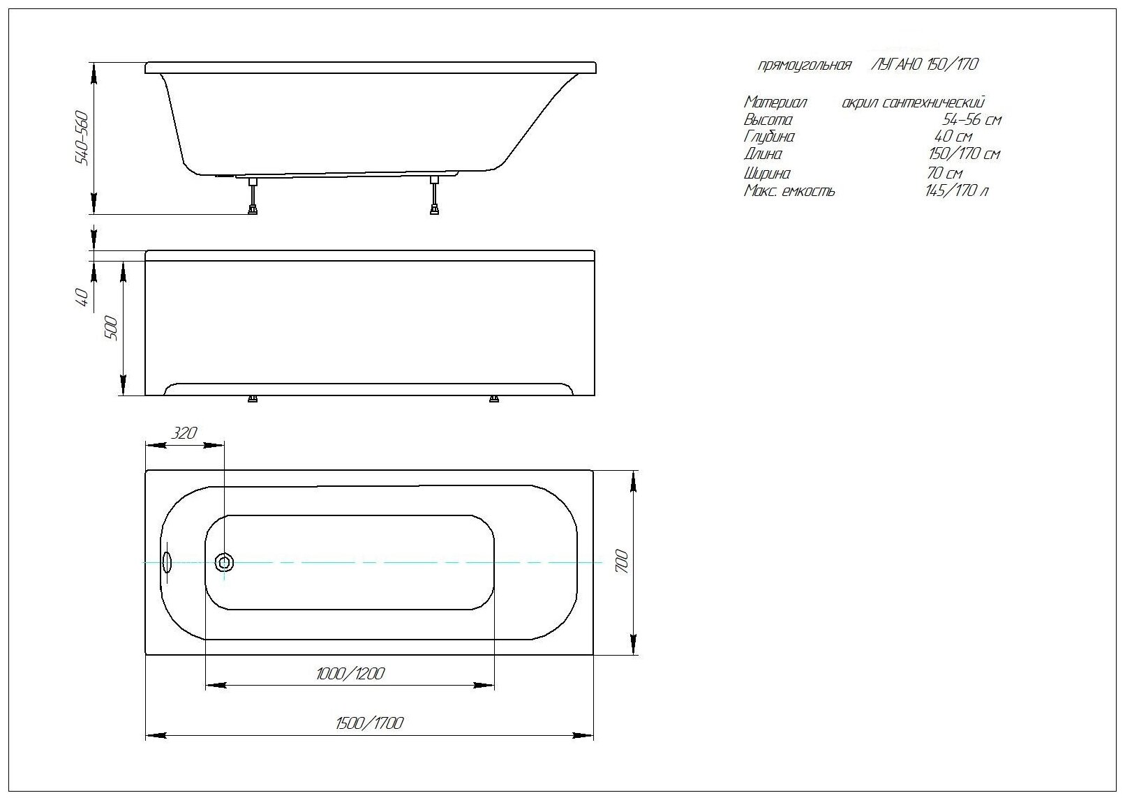 Ванна Aquatek Лугано прямоугольная 170*70см (LUG170-0000001)