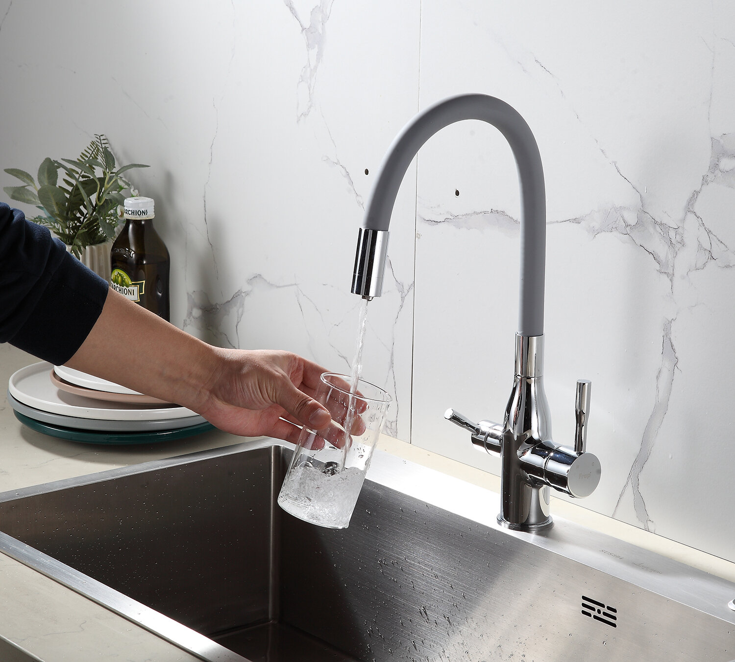 Смеситель для кухни под фильтр с гибким, поворотным изливом Frap F4396 хром,серый