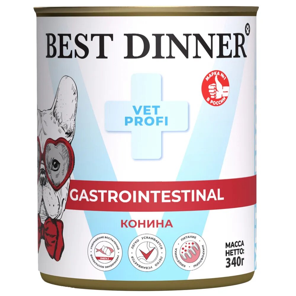 Best Dinner Exclusive Gastro Intestinal консервы для собак при проблемах пищеварения с кониной - 0,34 кг х 12шт