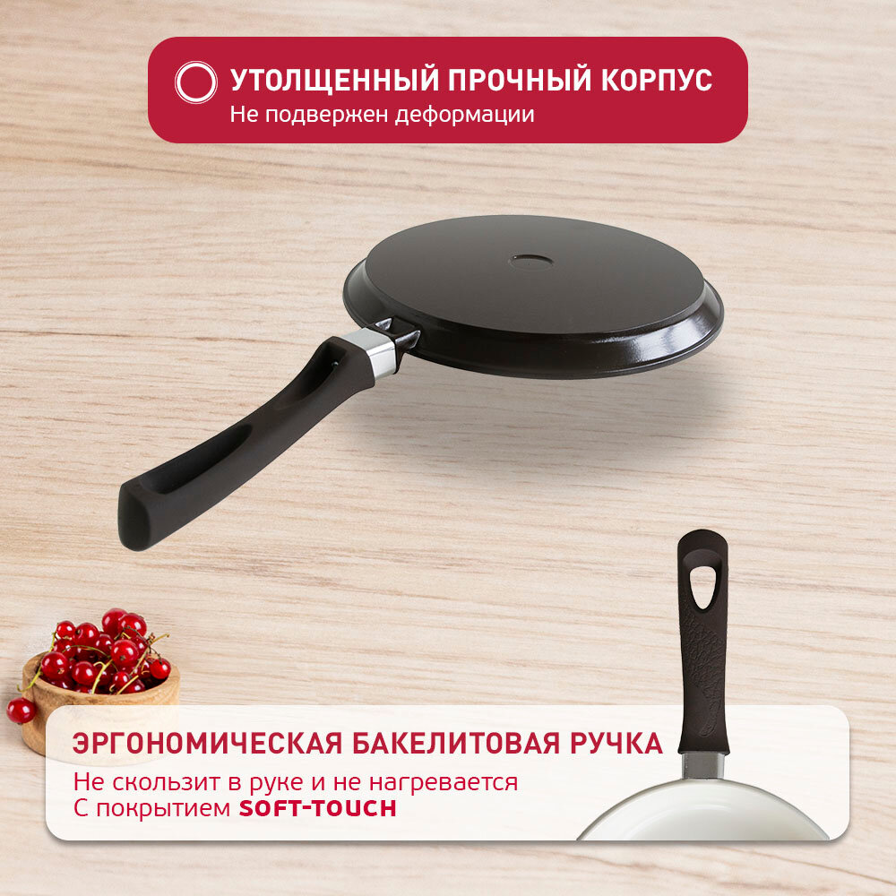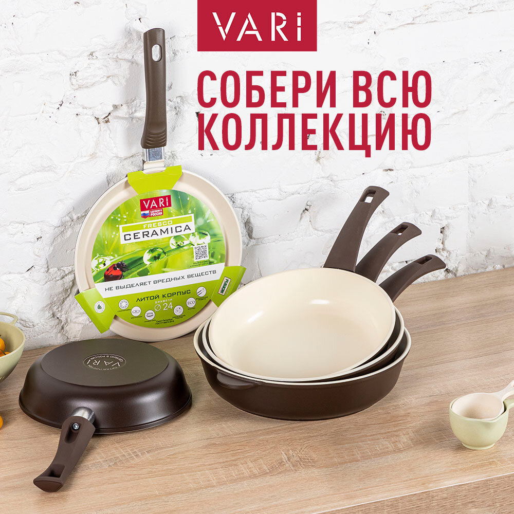 СохранитьСковорода блинная литая VARI FRESCO CERAMICA, 24 см, с керамическим покрытием из безопасного пищевого алюминия и жаропрочной бакелитовой ручкой , можно мыть в посудомоечной машине интересное: