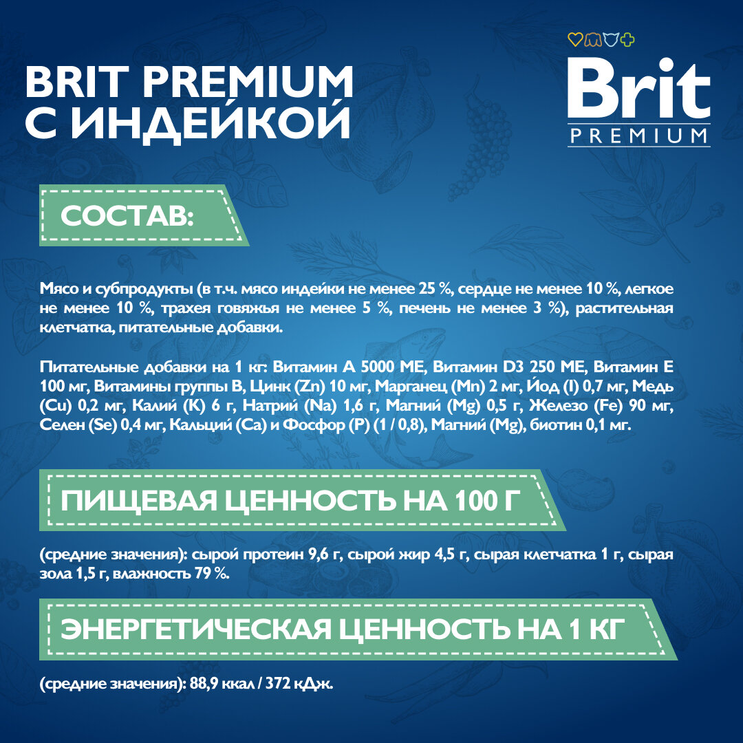 Brit Premium 18шт по 410г консервы для собак с чувствительным пищеварением, с индейкой и тыквой