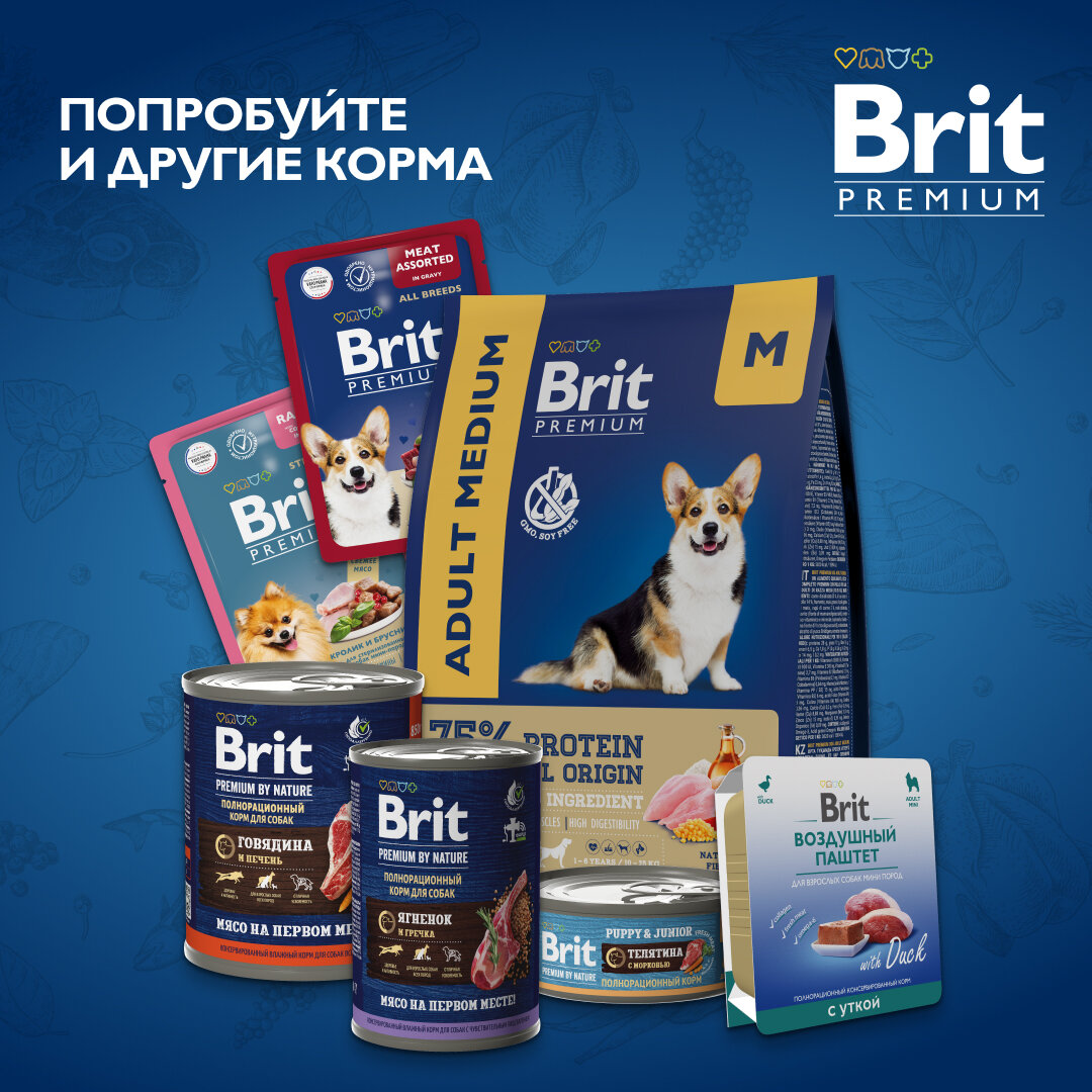 Brit Premium 3шт по 410г консервы для собак с говядиной